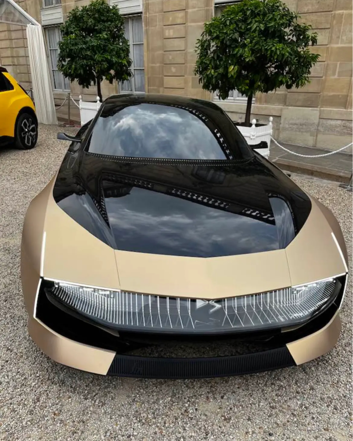Je la verrais bien sans l'ouverture au dessus de la roue arrière et avec la peinture dorée allant jusqu'à l'arrière tronqué :