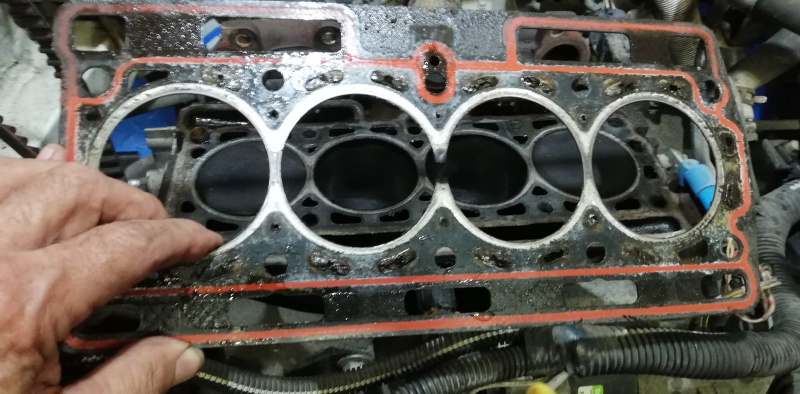 Dans mon cas je n'ai pas de fuite de compression ou de passage de LR dans les cylindres. Le LR s'échappe pas les conduits de retour d'huile qui redescendent vers le carter quand on met le circuit sous pression, donc le joint fait encore partiellement son job et ont peu imaginé qu'il est en état autour des chemises.