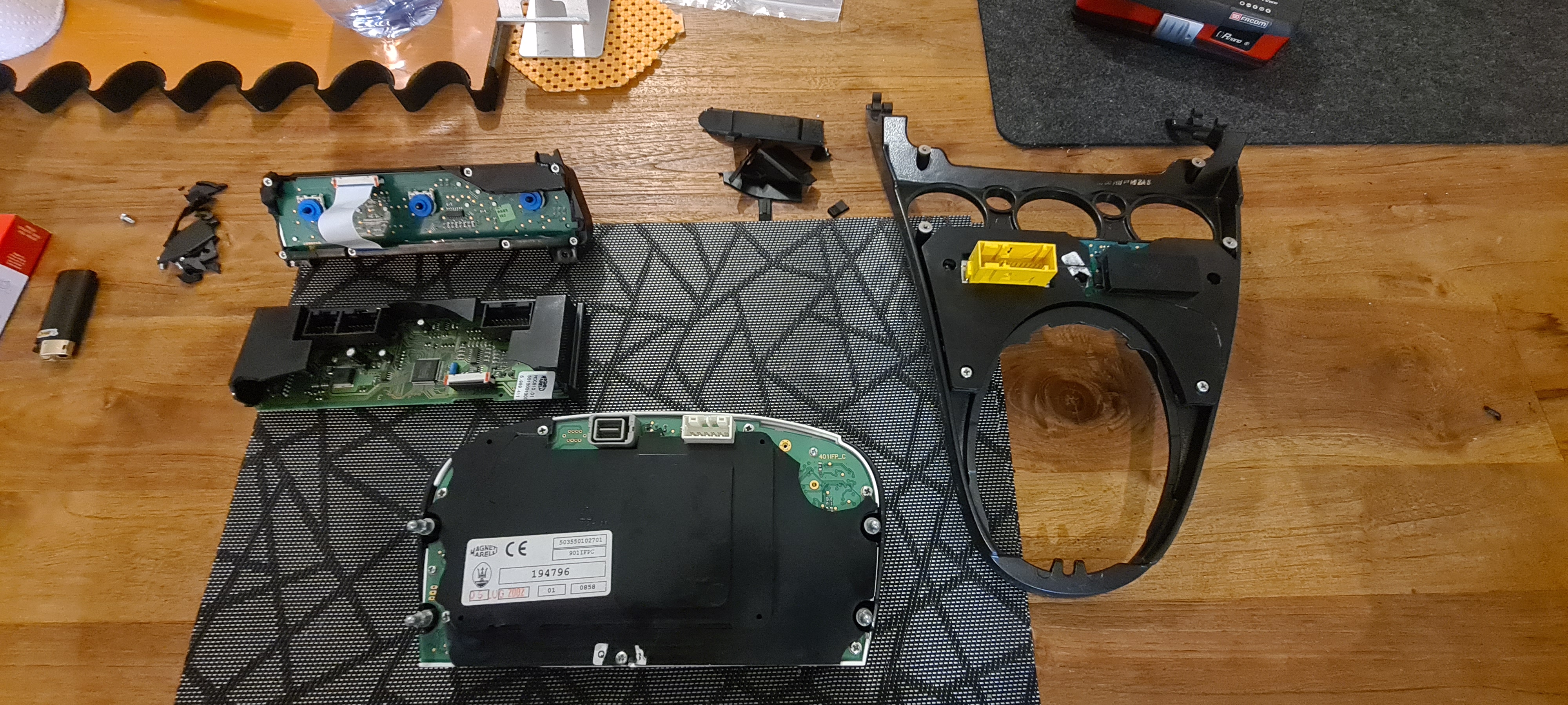 Me voilà en plein dedans, après avoir repoussé l'opération mainte et mainte fois :D je suis venu à bout de ce tableau de bord ! Opération qui va ce prolonger avec la réfection des boutons de tableau de bord et du coup la refabrication des caches extérieurs des différents organe du tableau de bord... je m'explique.