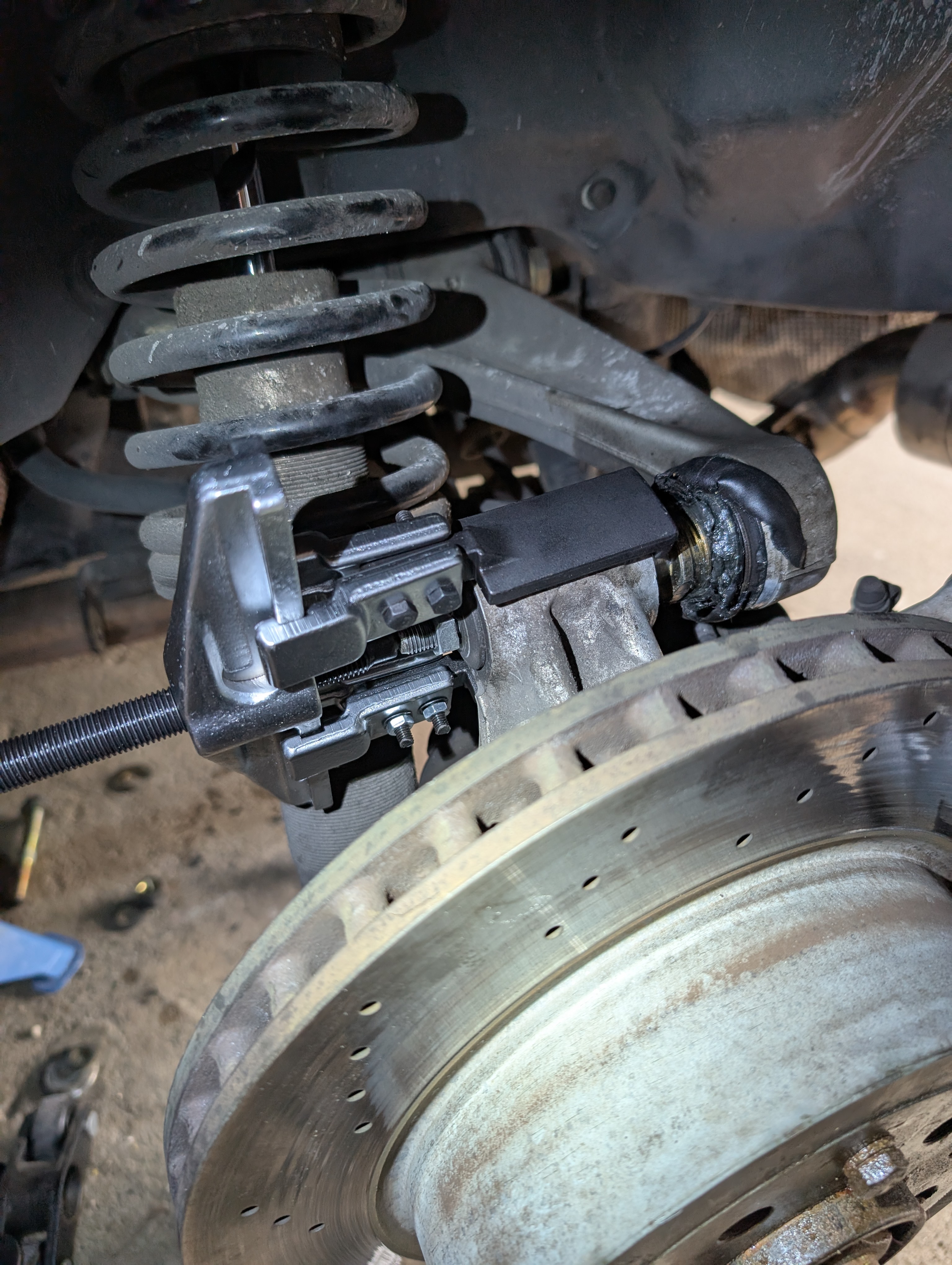 J'avais remarqué qu'un de mes caches poussières de rotule de triangle de suspension arrière était en mauvais état: viewtopic.php?t=10747