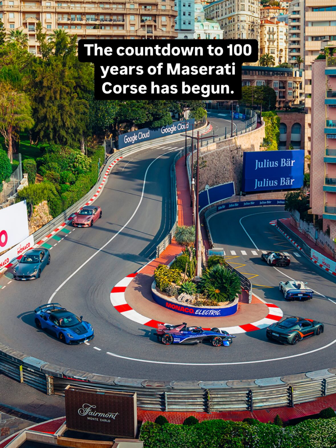Pour fêter l’entrée dans la centième année de courses de Maserati, une parade spéciale Maserati a eu lieu ce week-end du 3-4 mai 2025 sur le circuit de Monaco