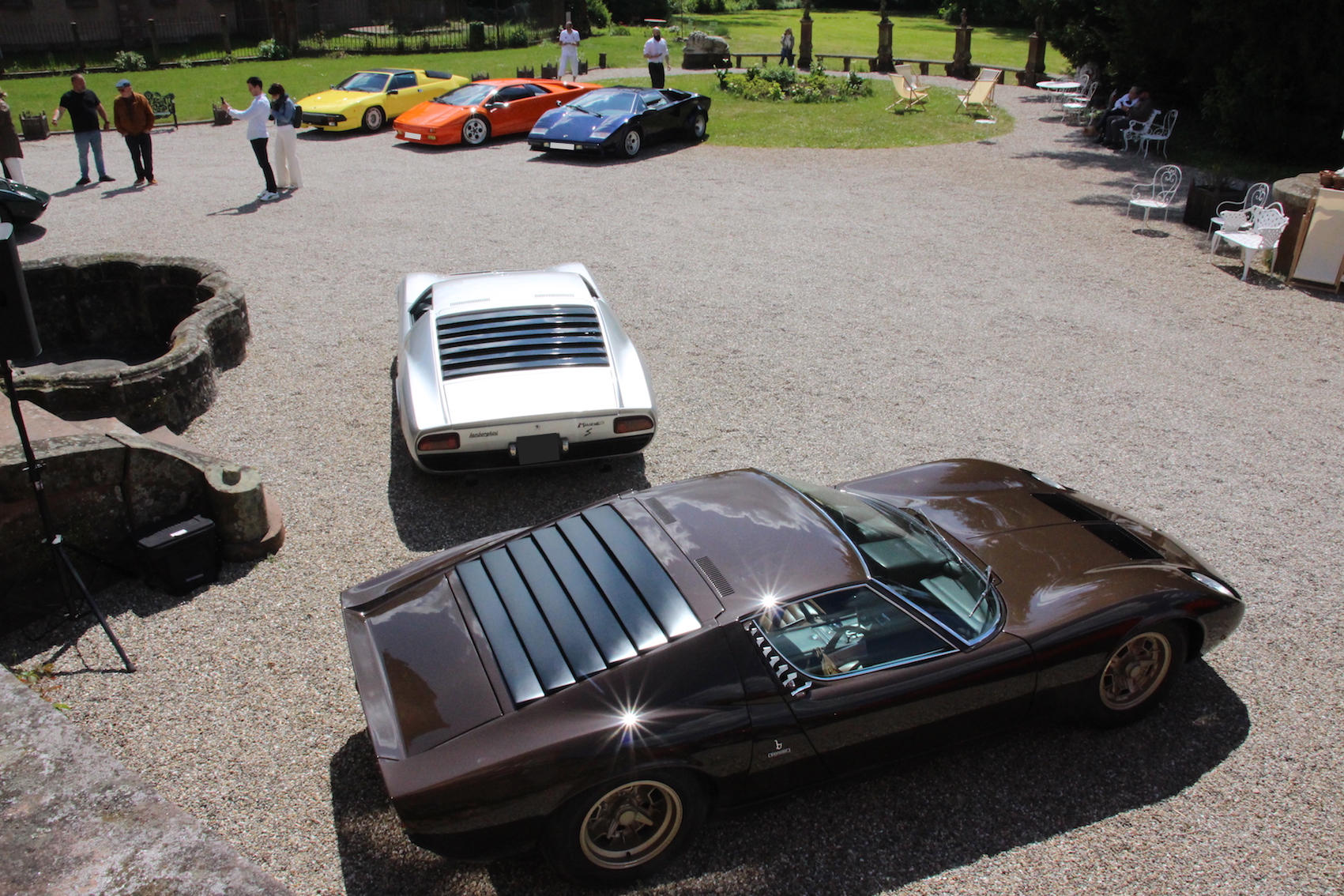 Il y avait 4 Miura (modèle à l'honneur), et pas mal de beautés: BB512/Testa, Venturi, Lancia Hyena, une meute de Porsche, toutes rares,