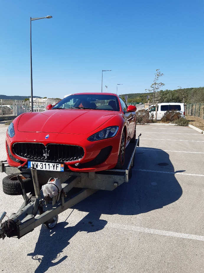 La voiture est enfin arrivé à la concession de maserati cannes vallauris.