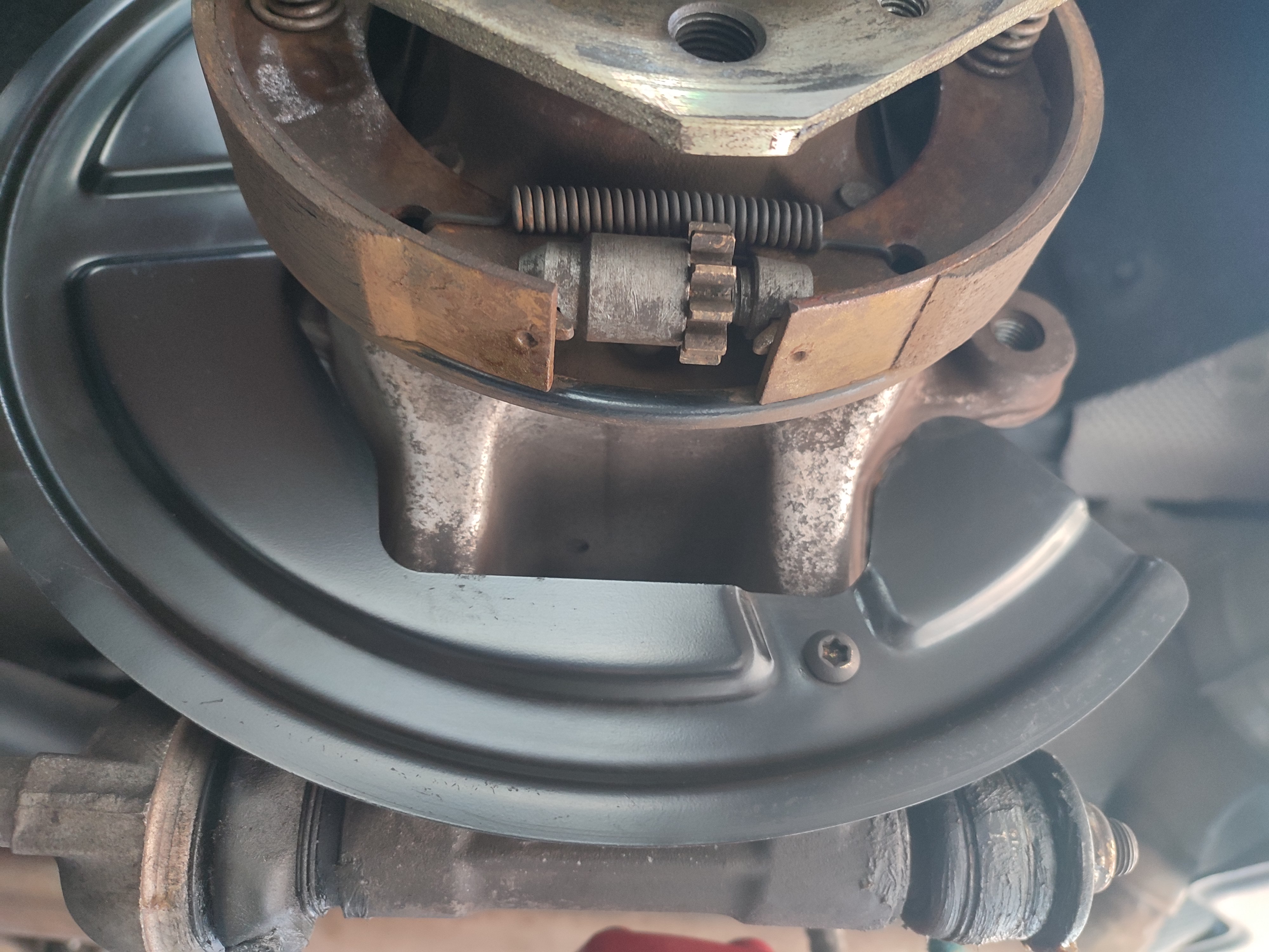 Du coup j'ai ajusté au plus près sans avoir de points de frottement en aillant au préalable desserré au maximum la tension du câble du frein à main .