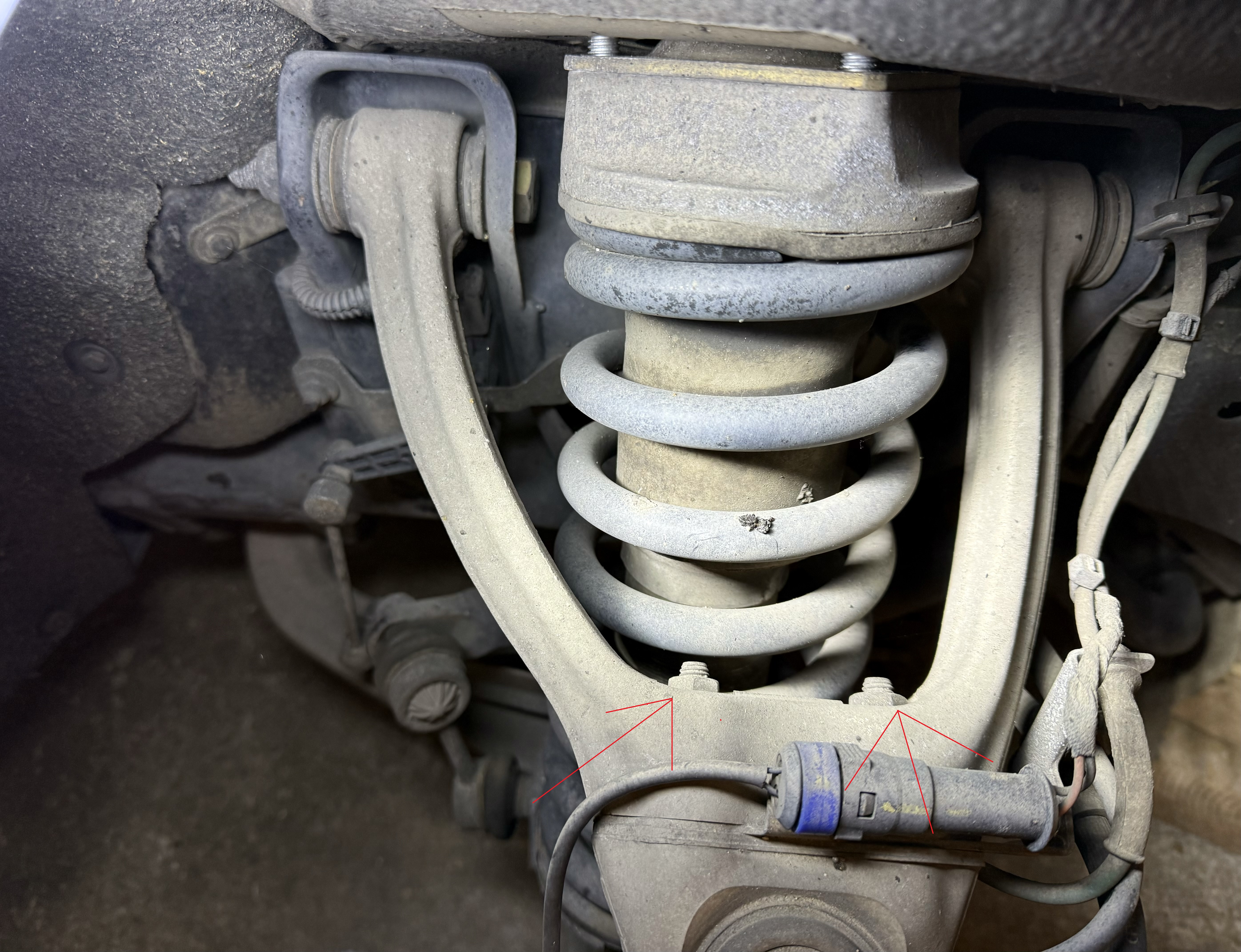 4 vis de 13 qui tiennent les coupelle et une grande au bas de la suspension. On change les silent bloc je l'ai pas dis mais il faut une presse hydraulique