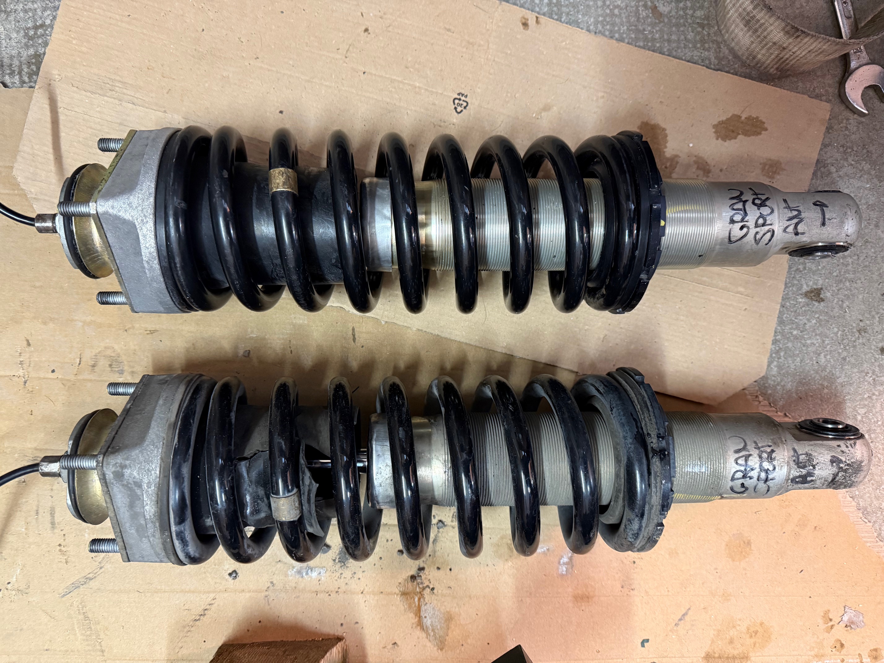 On voit bien l'ancien complètement tassé. Hop suspensions ready pour le remontage. L'arrière se fait bien plus facilement que l'avant.