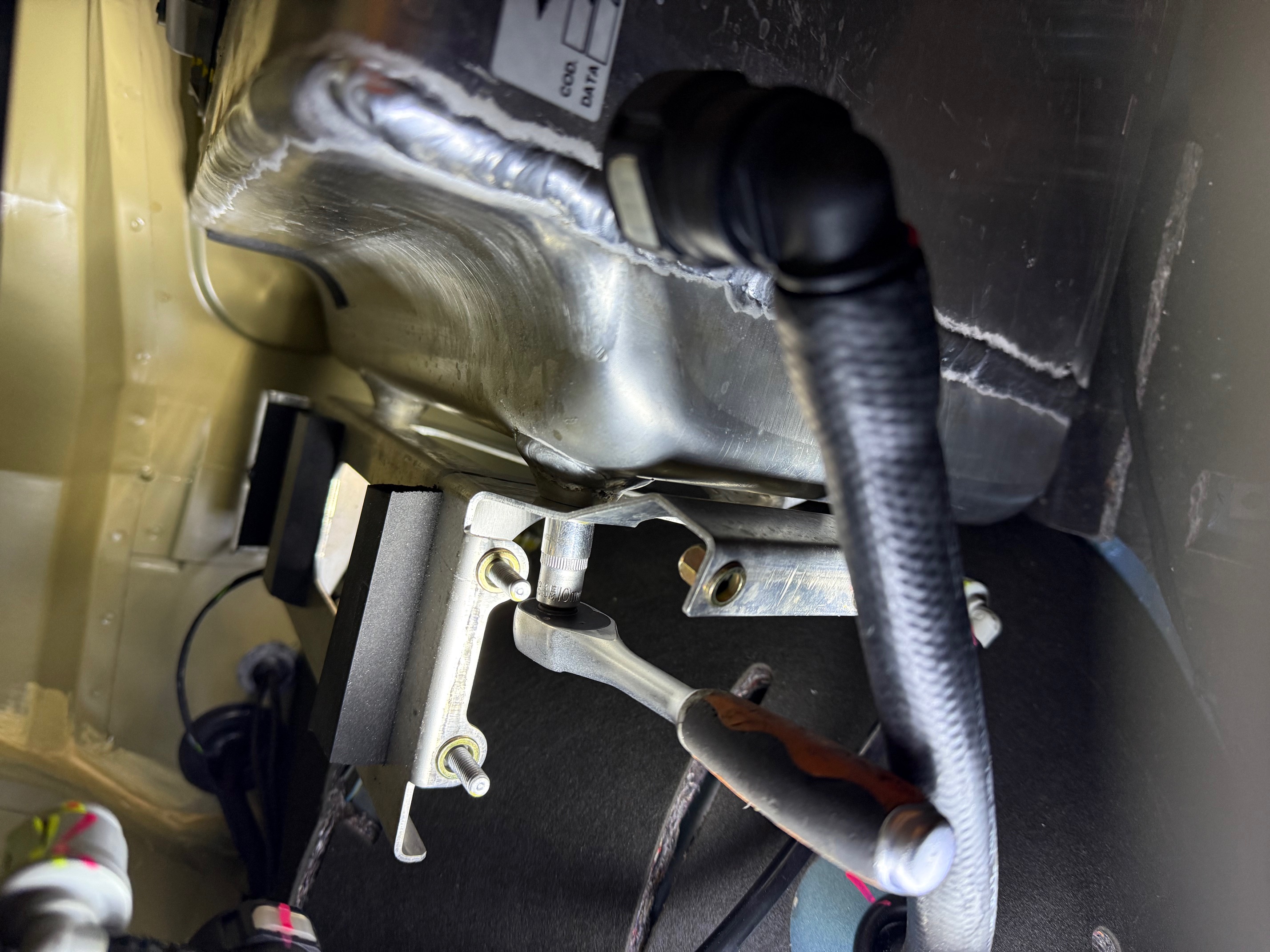 Côté conducteur je vous conseil également de désaccoupler la petite biellette qui est ratachée à un capteur de position cela semble fragile pour ne pas l'abimer pendant les manipulations. Je dis difficile car il vous faudra comprimer le ressort pour réussir à passer un cliquet.