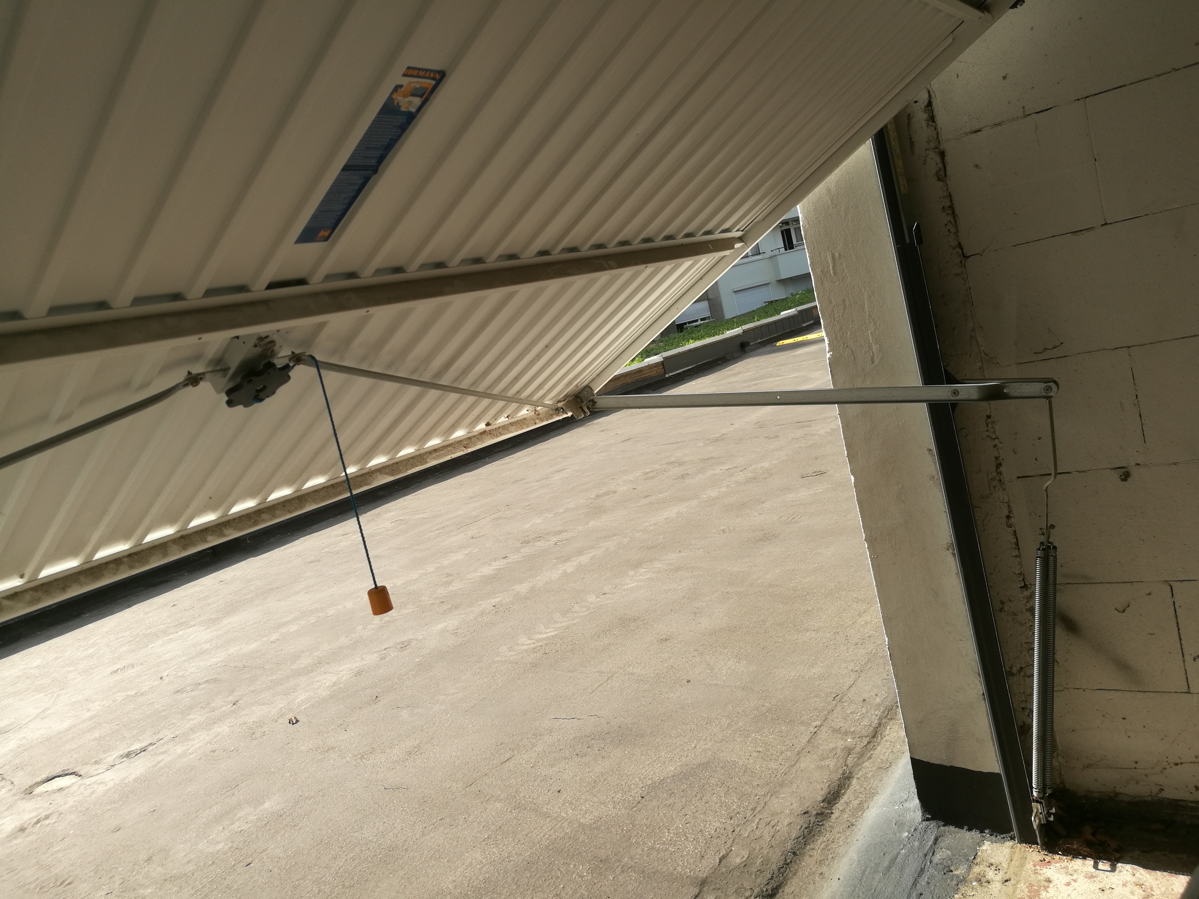 Chaque porte basculante est normalement verrouillée par une fermeture centrale agissant sur deux mâchoires latérales basses:
