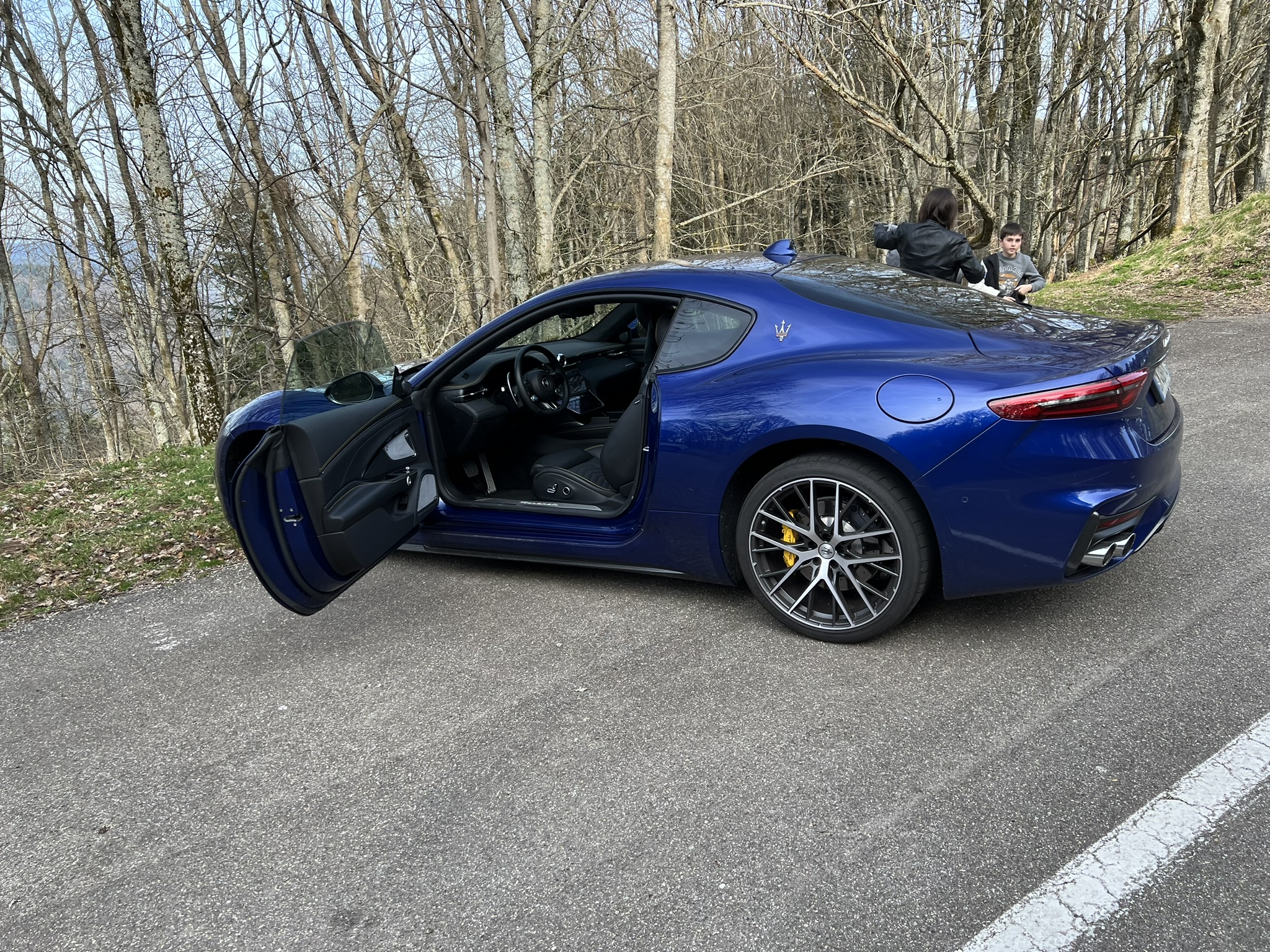 Quelques kilomètres pour quitter la ville et sa platitude ennuyeuse et nous voilà sur la route des crêtes : l'occasion de faire vrombir le Nettuno. D'abord en mode GT/Manuel sur les premiers lacets, la belle accroche bien (les 4 roues motrices sont un plus incontestable) et les relances sont déjà bestiales en sortie de courbe. Je passe en mode Sport/Manuel et c'est encore plus efficace ! D'abord le son change et devient plus rauque et plus marqué. Les reprises encore plus vives et il faut faire attention car c'est une vraie bombe! à quasi 300 k€ taxe comprise, ce n'est pas le moment de la faire exploser !