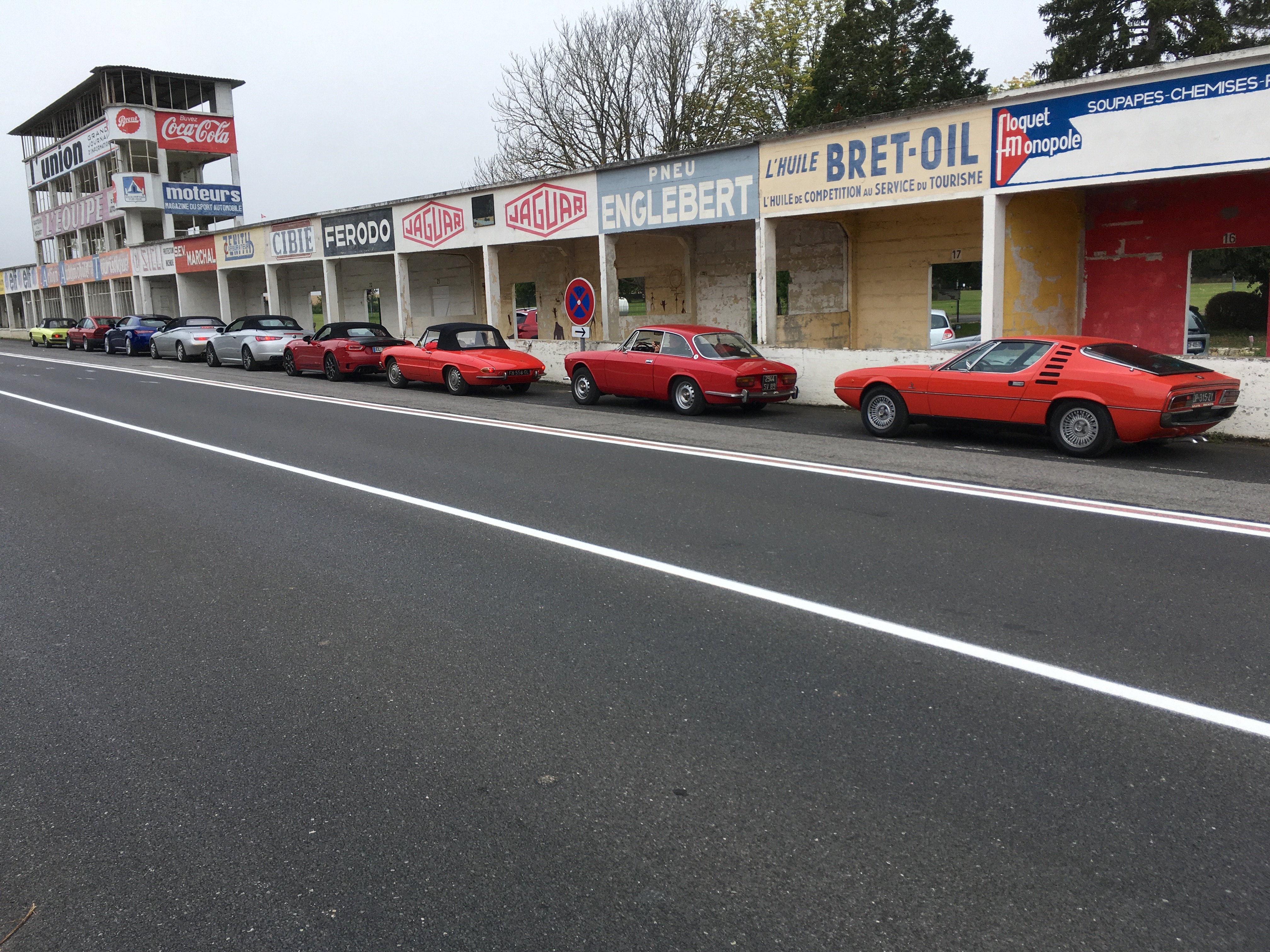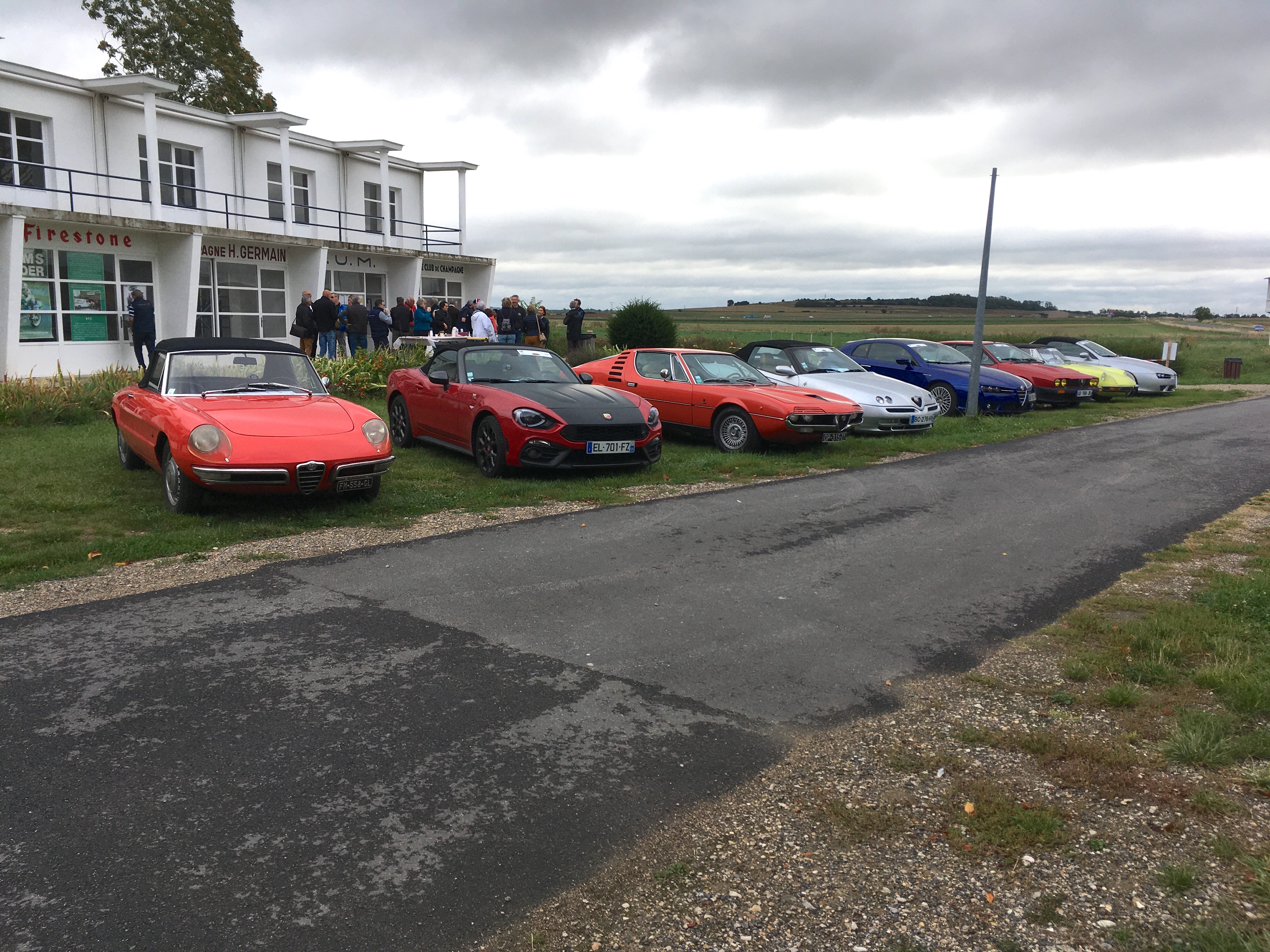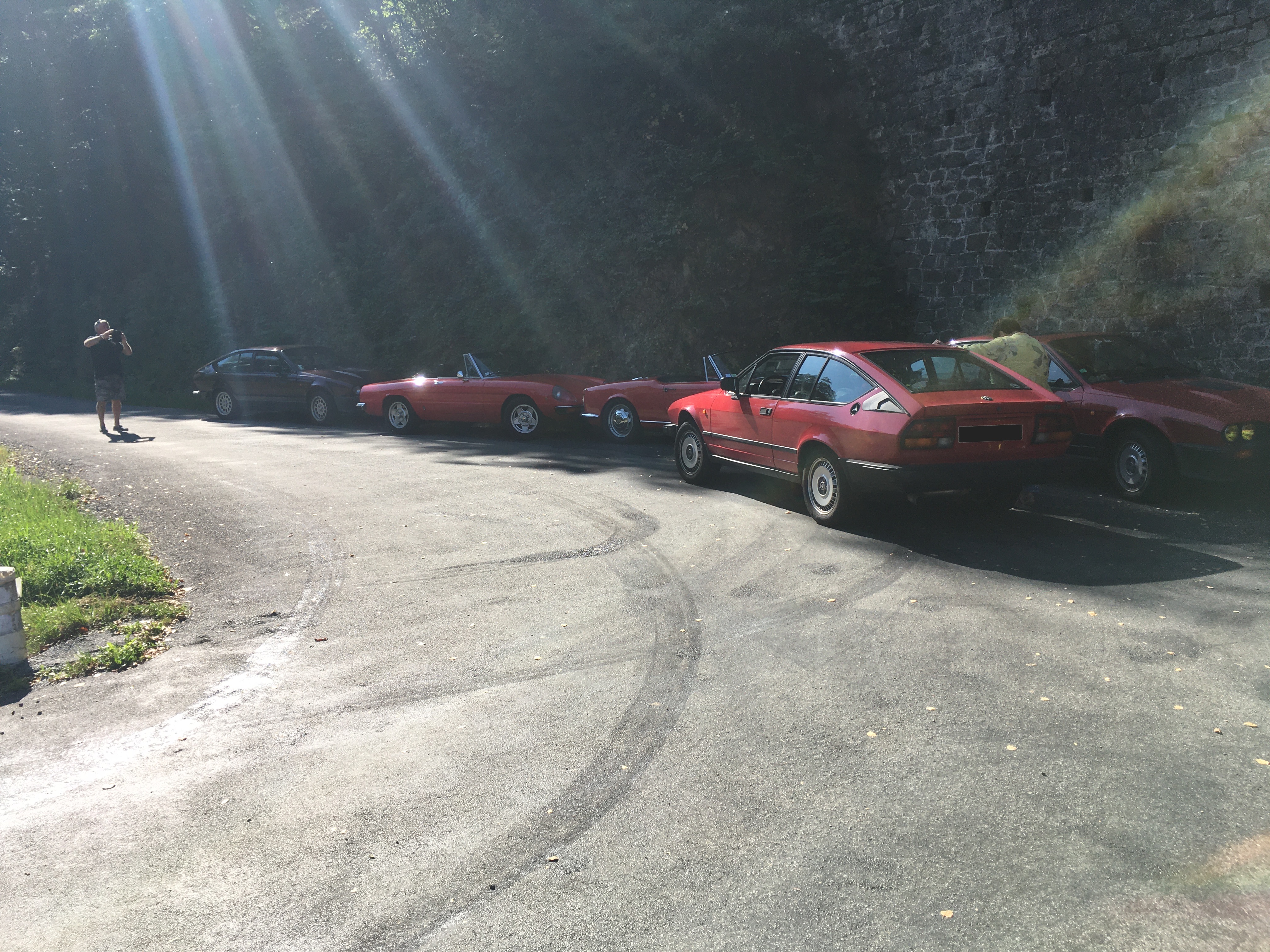 Une dizaine de voitures, majorité GTV6, mais aussi un GTV "inox" creme, un Spider Giulia 1600, un spider