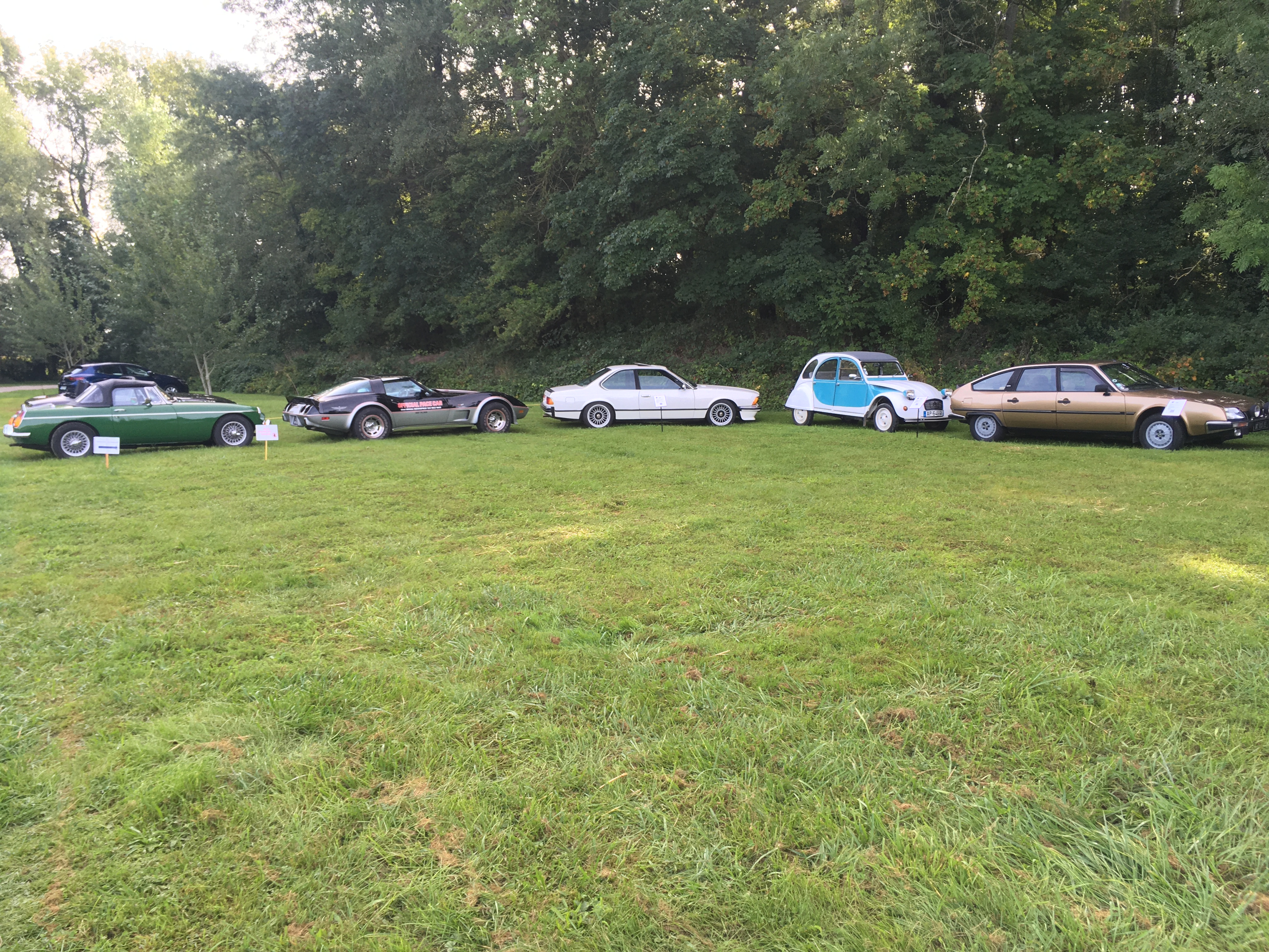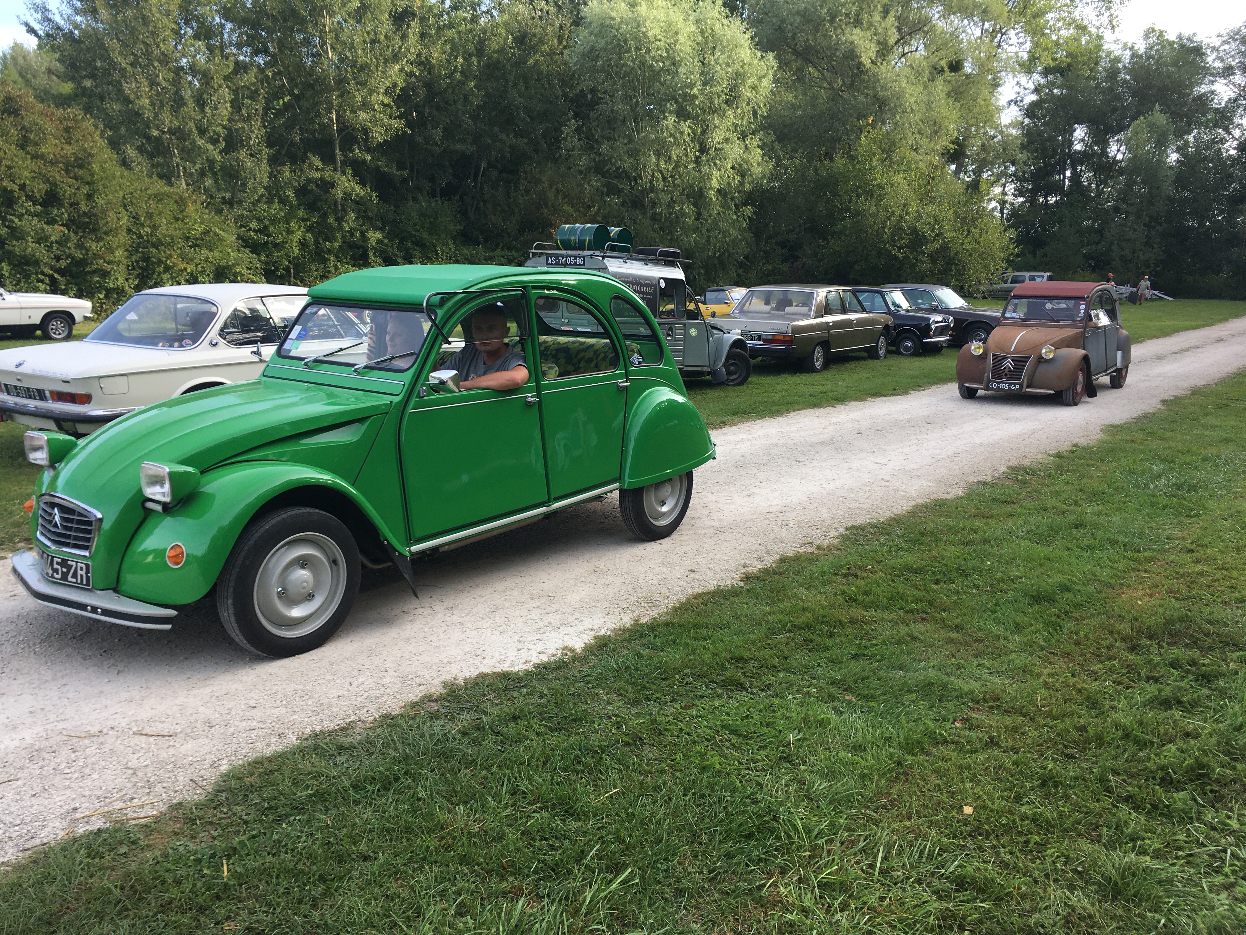 Alpine, BMW série 2800/3,0 CS, 635, 2 Alfa, une meute de Citroen, dont bcp de deuches...: Le parking des visiteurs, un peu en vrac. Très belle journée, un peu caniculaire. A priori il le feront tous les deux ans. Là dans ce lieu c'était une première, avant c'était Espace