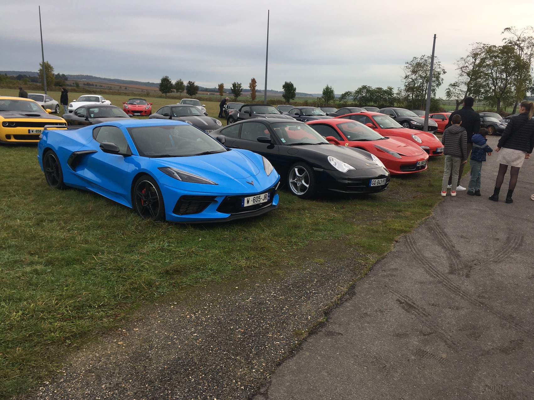 Porsche, Chevrolet "crevettes", Lotus, Jag, une Ferrari, une Masette GT.