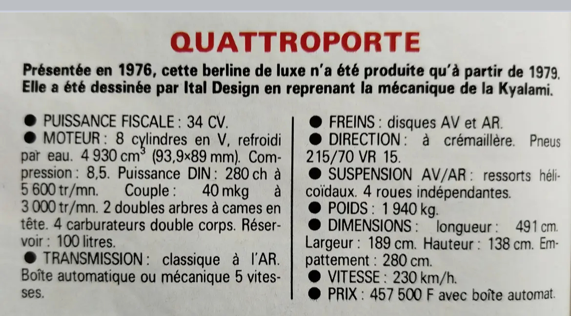 La Quattroporte III fut dessinée par le maître Giugiaro dans sa période cubique, elle est très géométrique, rectangles et pyramides. Mais extrêmement harmonieuse aussi. !