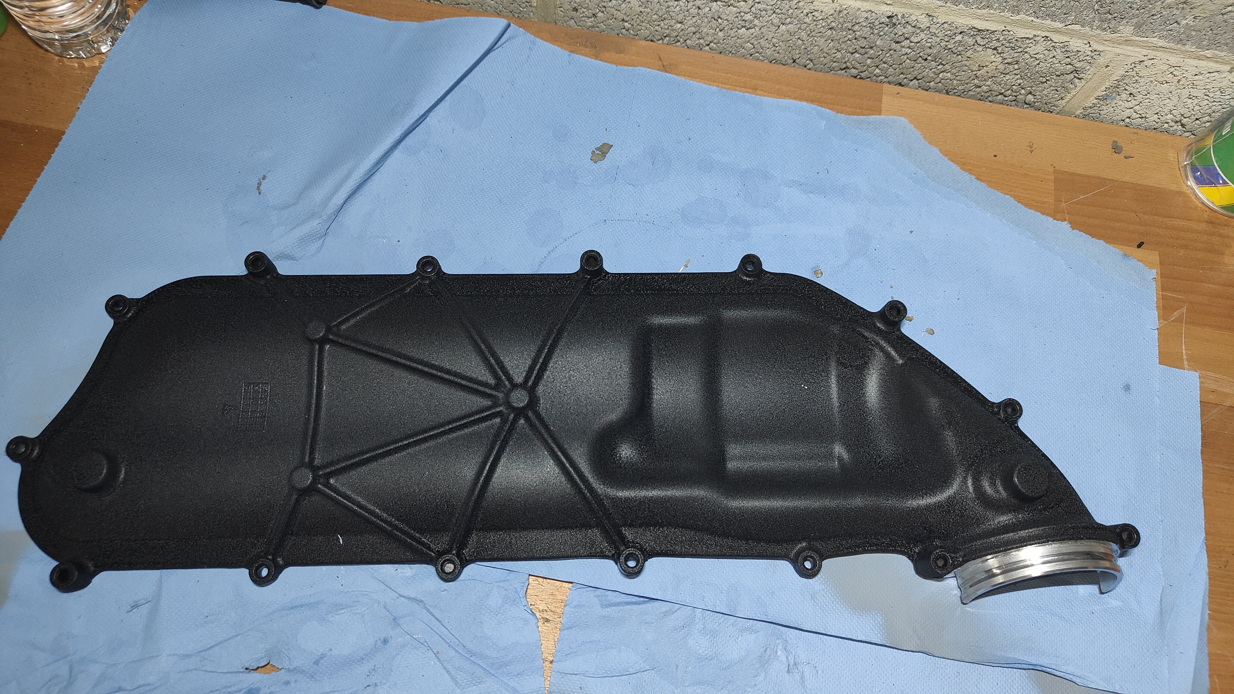 Demain, je sable la grosse pièce. Je me tracasse pas trop du risque de mettre du sable dans l'admission. La pièce repasse après çà par la case nettoyage dans le grand bac évier du garage avec du produit vaisselle pour être sûr de bien dégraisser, puis jet d'eau et soufflette.
