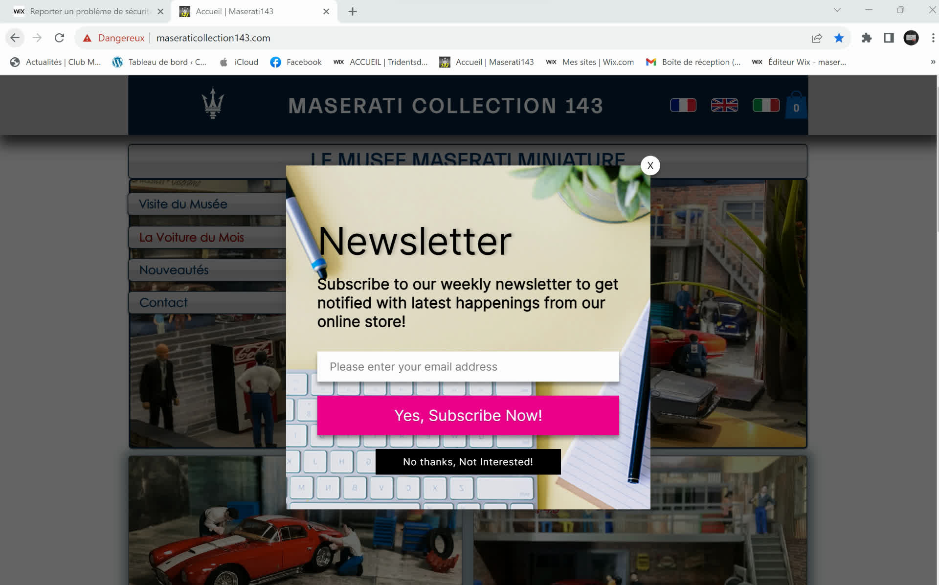Par ailleurs (mais ça n'est pas nouveau) je suis sollicité par une fenêtre "pop-up" à m'inscrire à une newsletter.