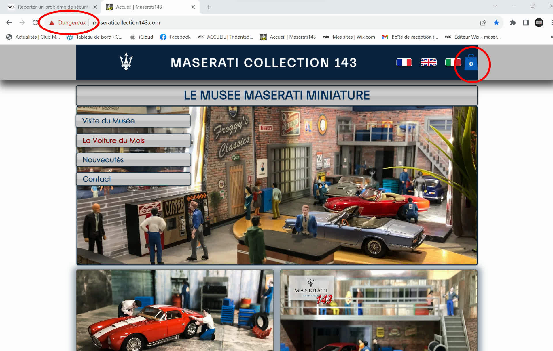 Avec Firefox, j'arrive jusqu'au site sans alerte mais je vois bien le panier d'achat dans le coin.