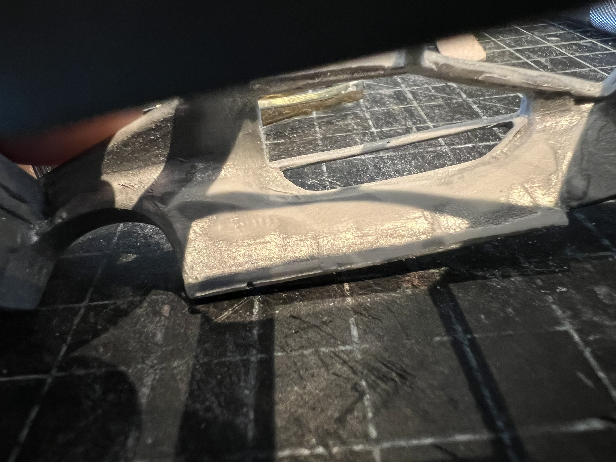 J'ai passé la carrosserie au ponçage, peinture. Puis j'ai oté les opercules des vitres et crac ! un des montants latéraux est cassé. Qu'à cela ne tienne, SuperGlu passe par là !!