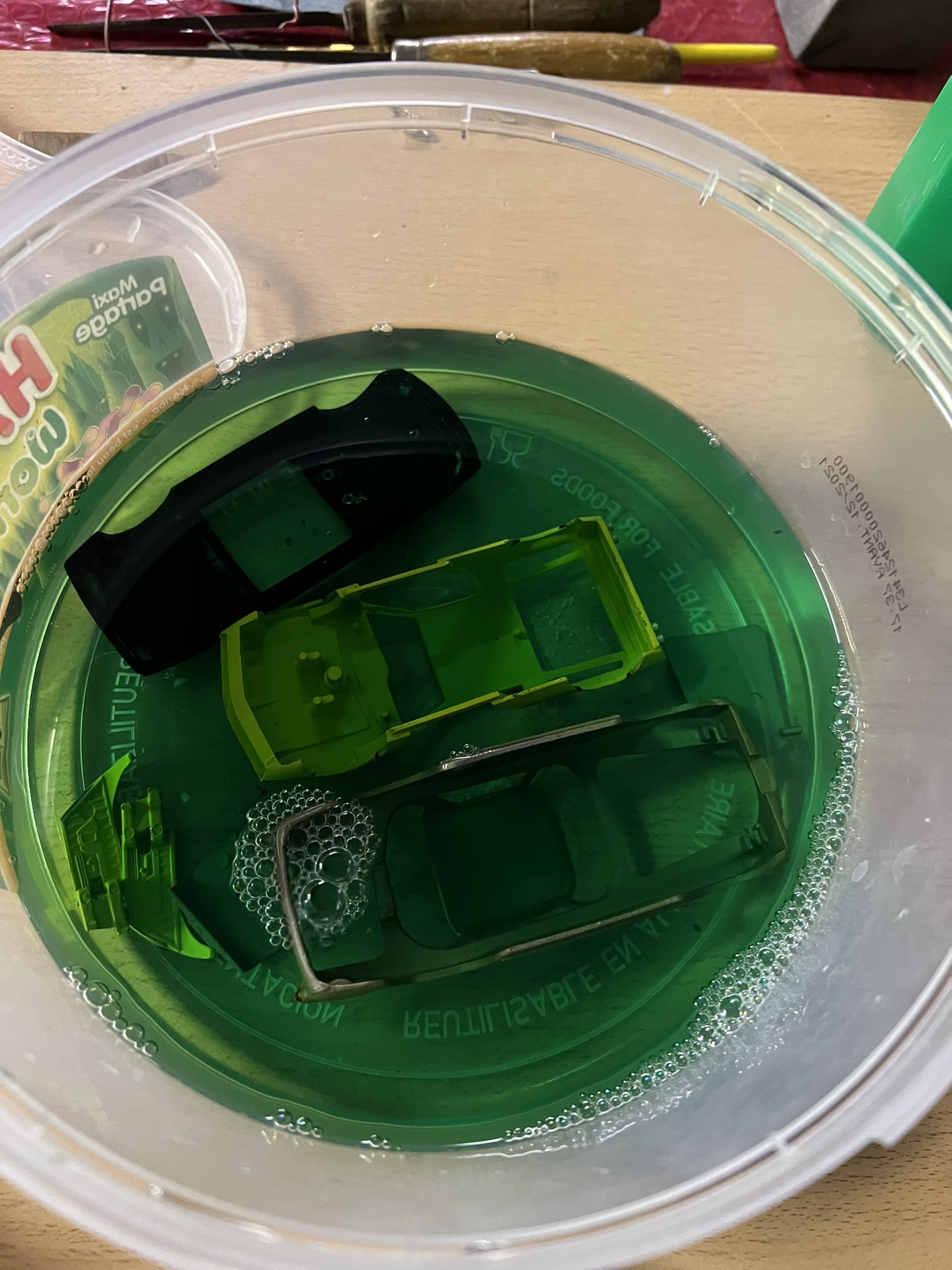 Bon, j'ai décidé de tout recommencer et donc, hier soir bain de Glanzer. Comme la peinture est récente, il n'a pas fallu pas 24h pour tout décoller.