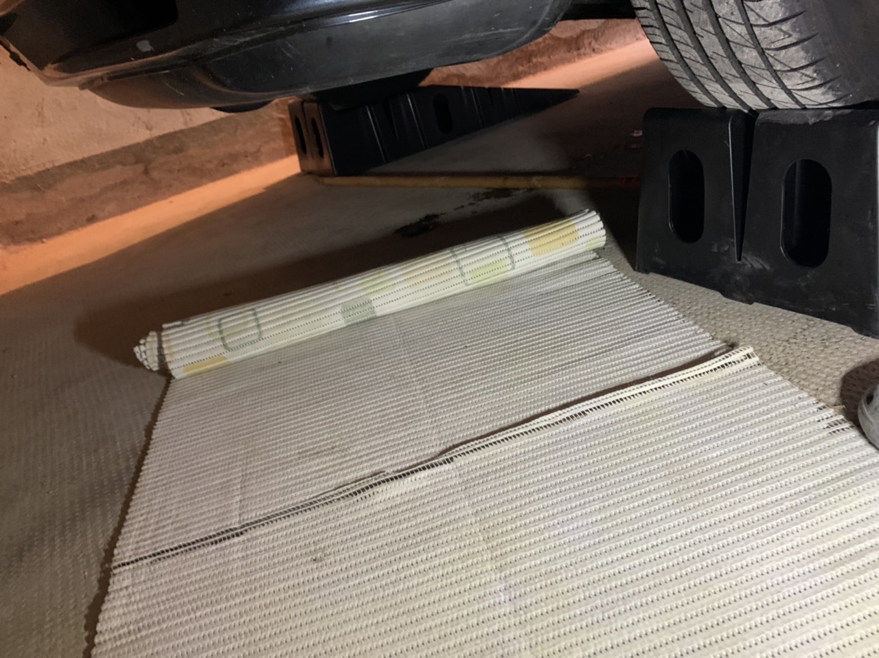 Ensuite, il te faut un chariot à roulettes pour pouvoir te déplacer couché dessous. Du moins quand la voiture est sur cric et chandelles, c'est indispensable, car la reptation est vraiment pénible.