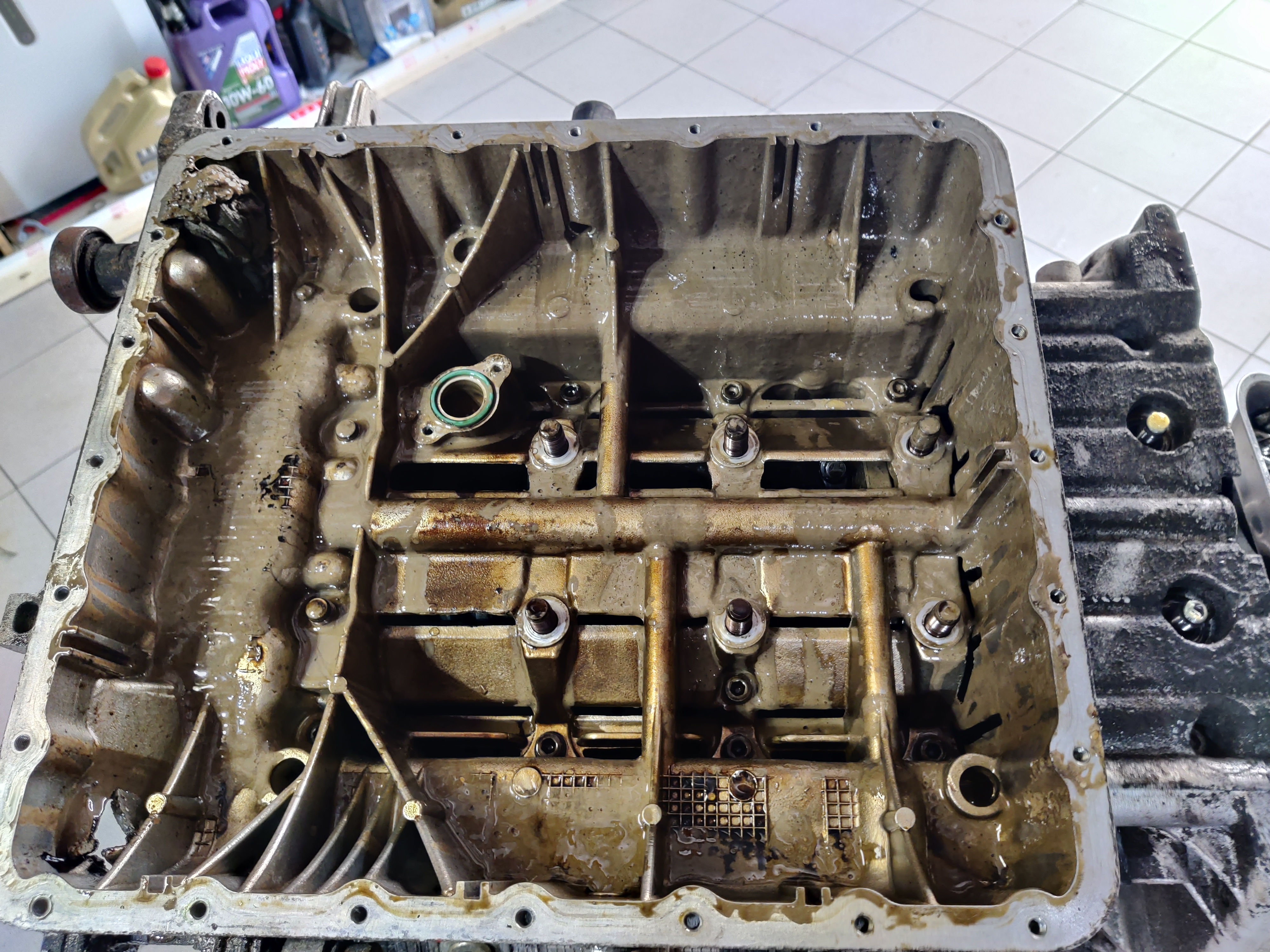 Bref, une fois ces vis ne gênant plus personne, on dépose le carter, c'est bien moins salissant de ce coté-ci, pas de mayo (ou quasi pas, admettons, un léger fond, assez logique vu qu'il a du trainer 10 ans au fond d'un champs, avec l'humidité ambiante).