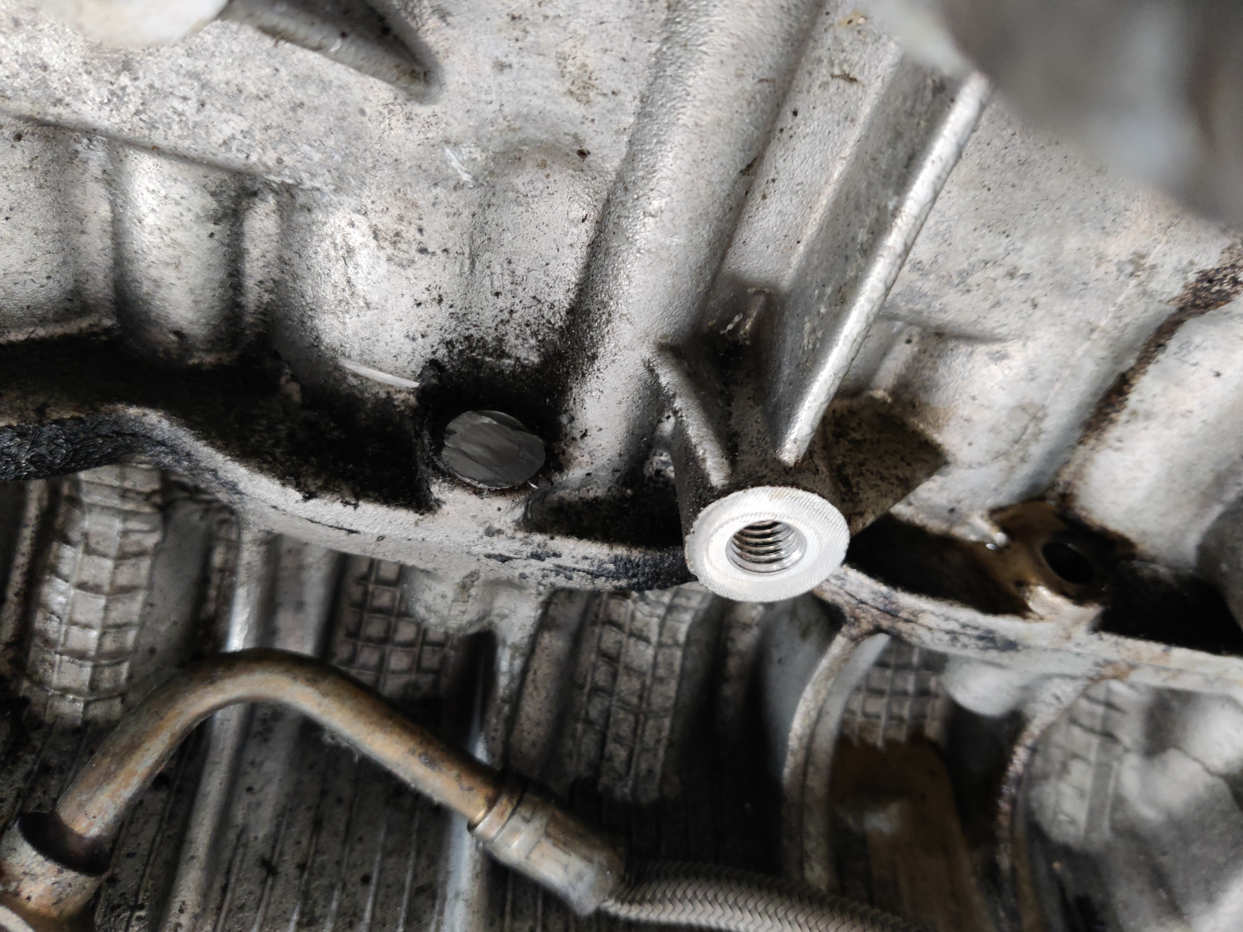 Bien entendu, ça n'a pas manqué, j'ai foiré deux des vis qui maintiennent les deux demi bas moteurs. Vu la position, il est strictement impossible d'y insérer un extracteur (pour les défaire ,j'utilise une clef allen 6 pans, que je prolonge avec une rallonge de 80cm, et même comme ça, c'est limite