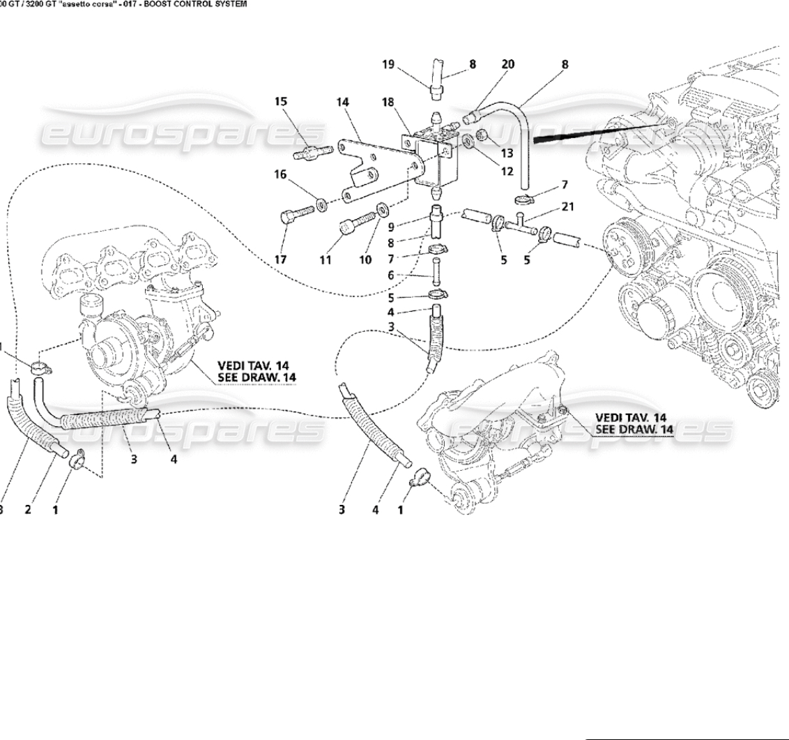 Grâce aux éclates de nos amis d eurospares, on voit bien le circuit des turbos et de la valve Pierburg.