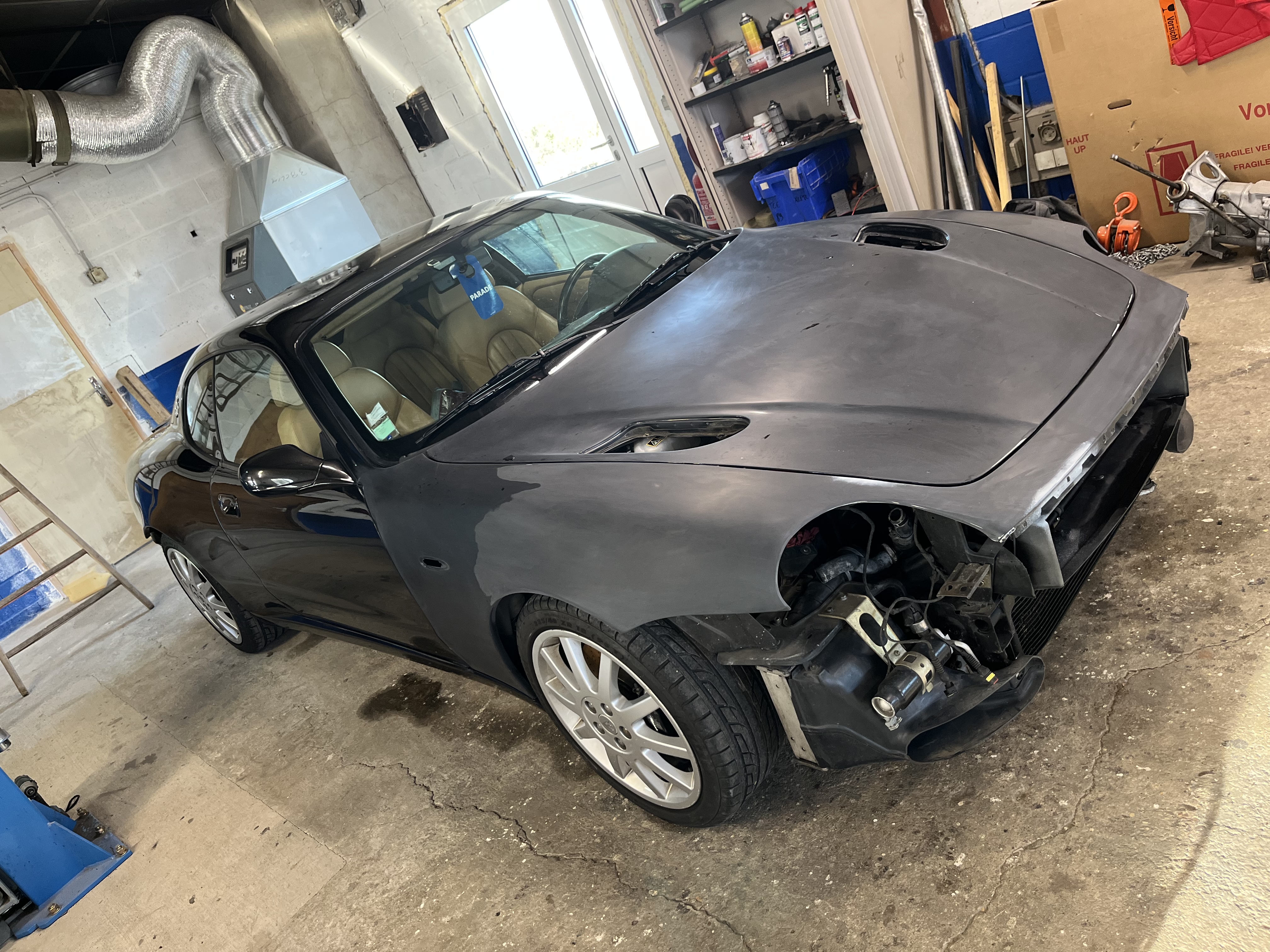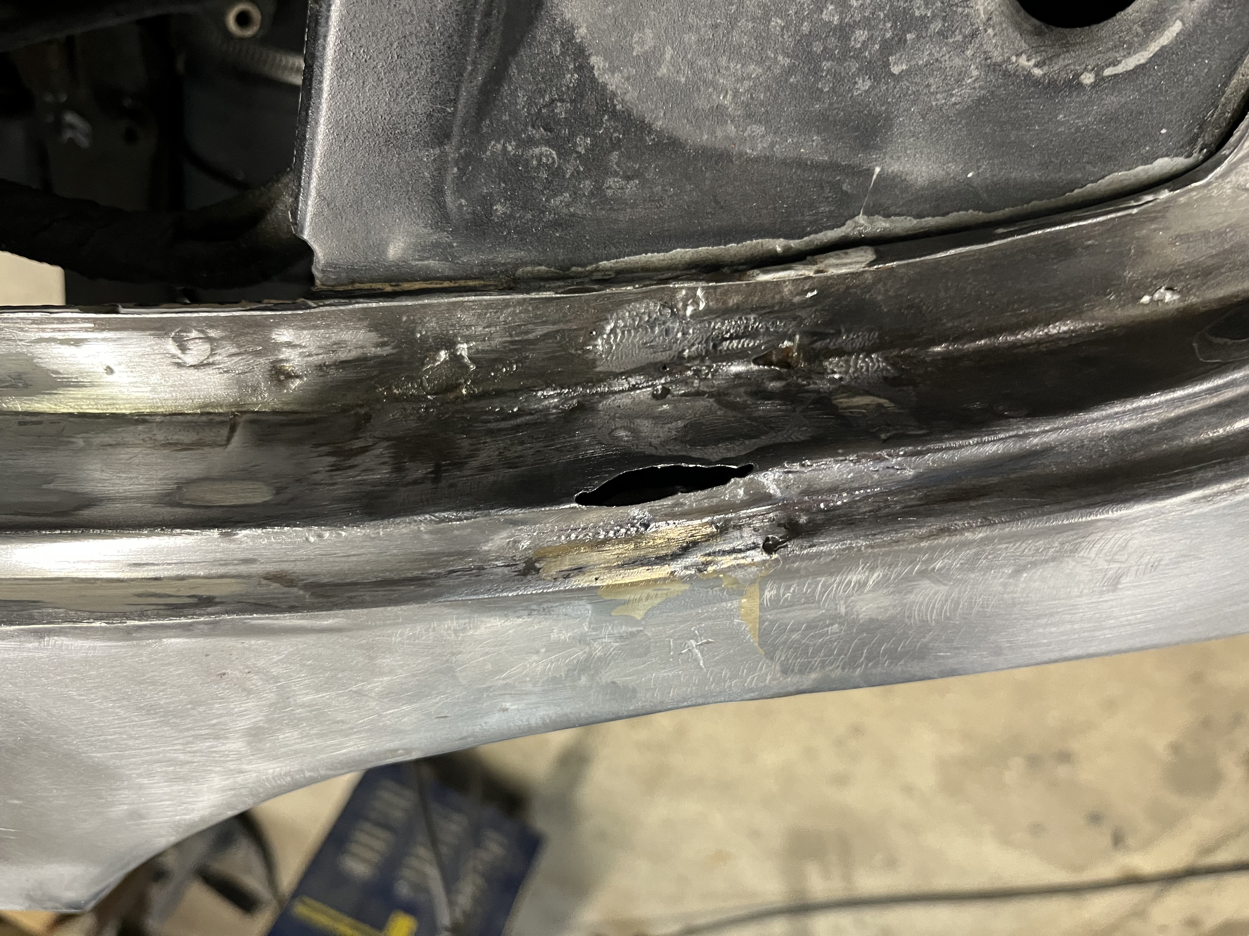je pense qu'elle a eu un gros choc avant, rien n'est en ligne et le bloc aile avant a été remplacé, il y avait du mastic partout, j'ai tout descendu a la calle pour que ce soir le plus fin possible, dessouder et redresser les parti tordu, et le peu de mastic que j'ai utilise est du mastic alu, bien plus solide que le jaune ou blanc habituel, sa ne bougera plus, ou d'ici 15 ans, car ca reste du mastic ca travail un jour ou l'autre il faut pas le nier.