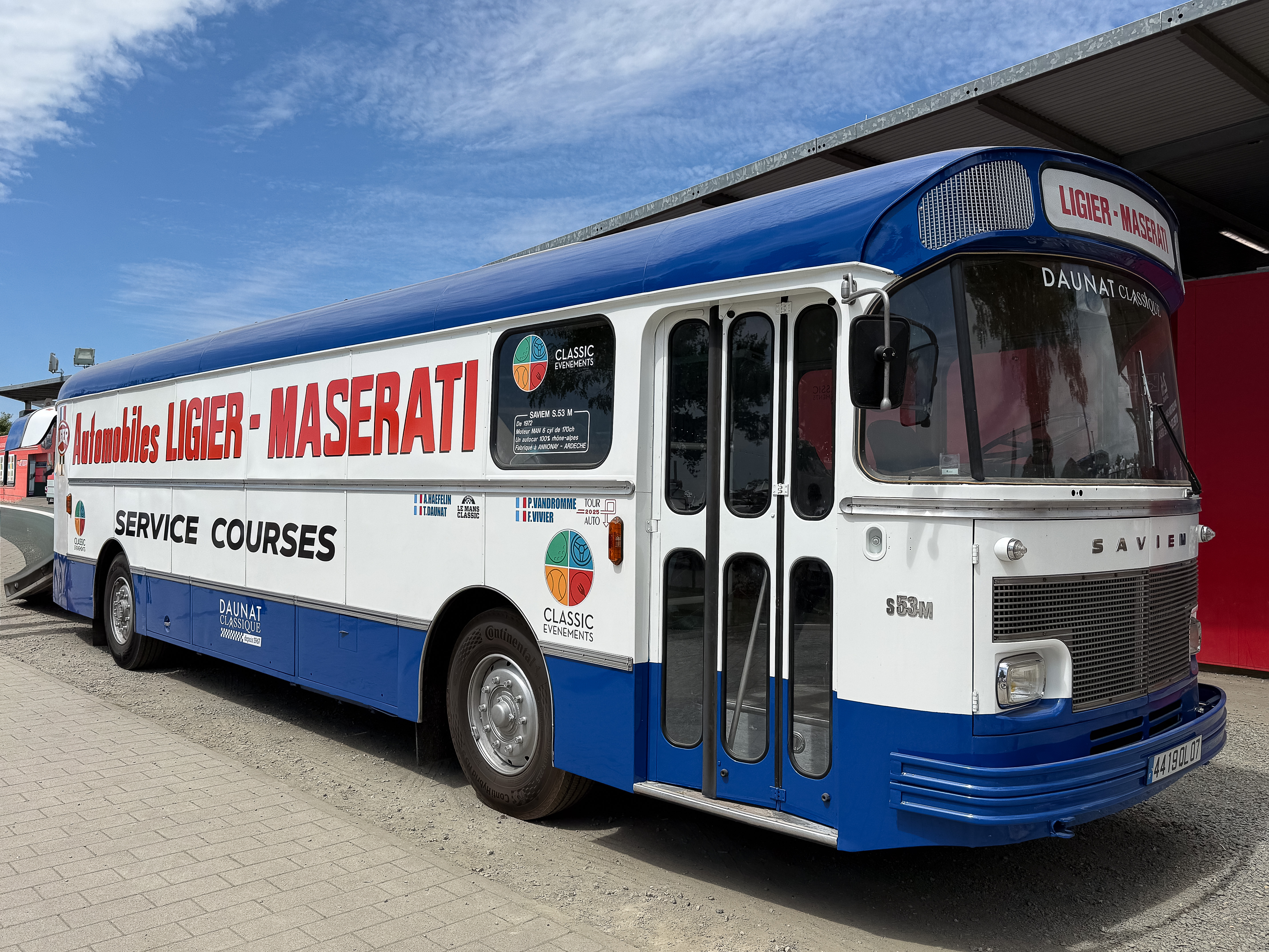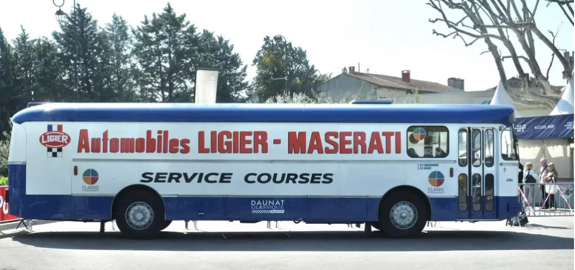 Vu dans la dernière vidéo diffusée par la chaine Youtube POA, tournée au garage Daunat, spécialiste SM et possesseur d'une Ligier JS2 = le bus transporteur de l'écurie Ligier Maserati