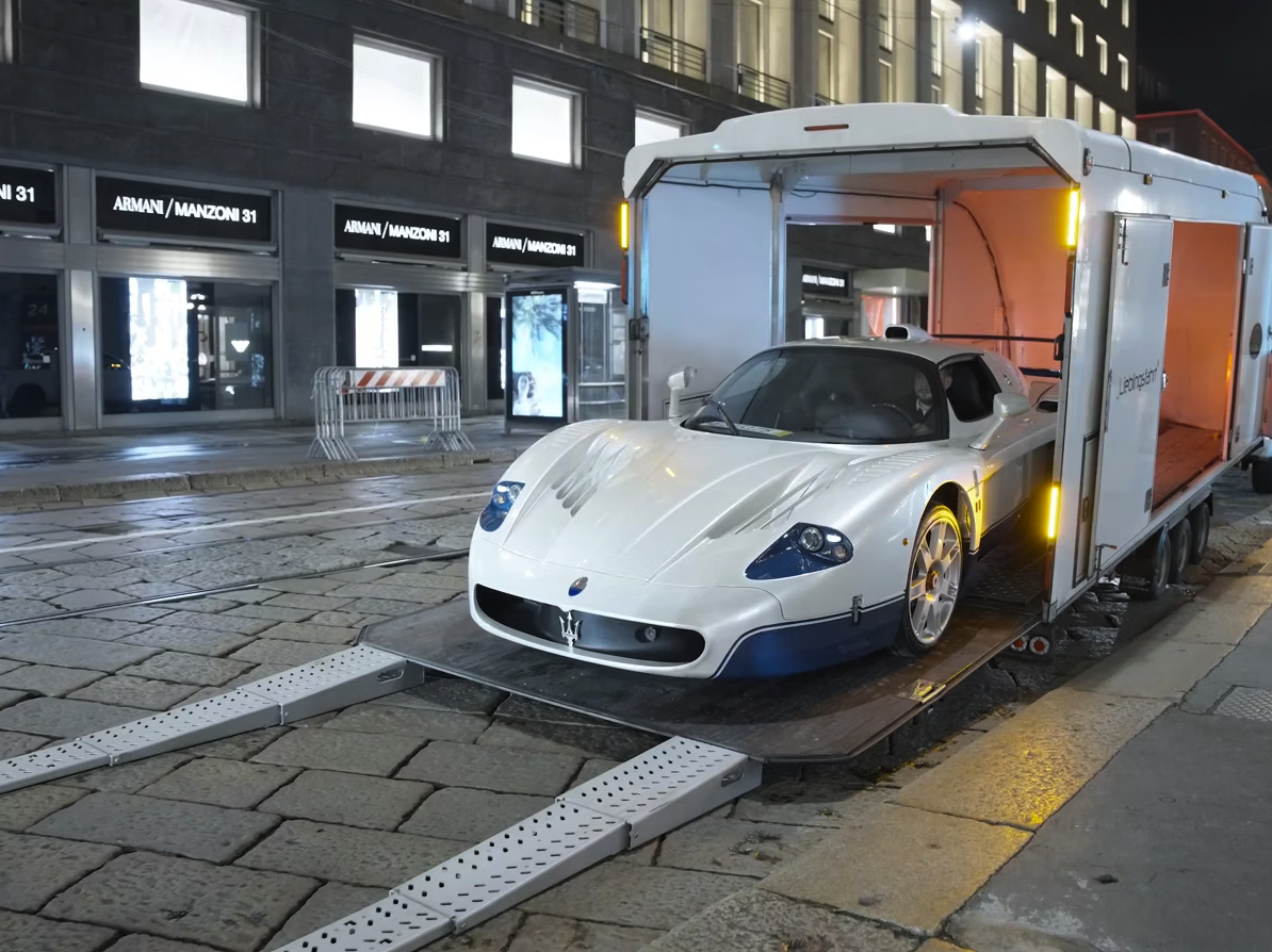 Pour les MC20 de course aussi, on pourrait se contenter d'une remorque pas trop haute, sauf que de nos jours, on range la voiture dans un faux plafond et on place un atelier de mécanique en dessous.