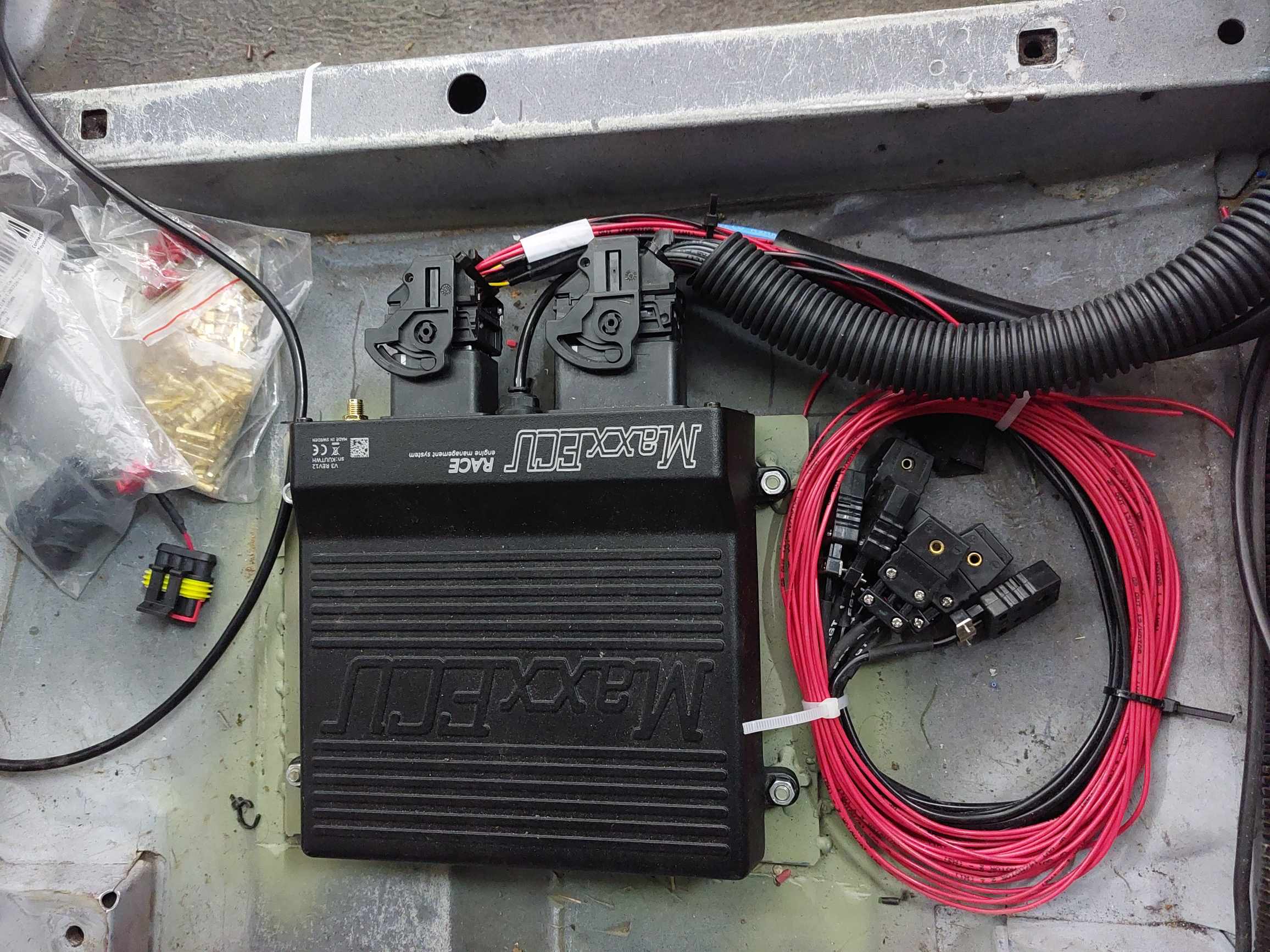 Au départ je voulais démarrer d'abord sur les boitiers d'origine, roder 50km et ensuite passer au boitier Maxxecu Race que j'ai déjà installé. Mais le setup d'origine est trop incertain, je viens de virer les faisceaux des marelli, ca m'a pris 10 minutes, vraiment facile.