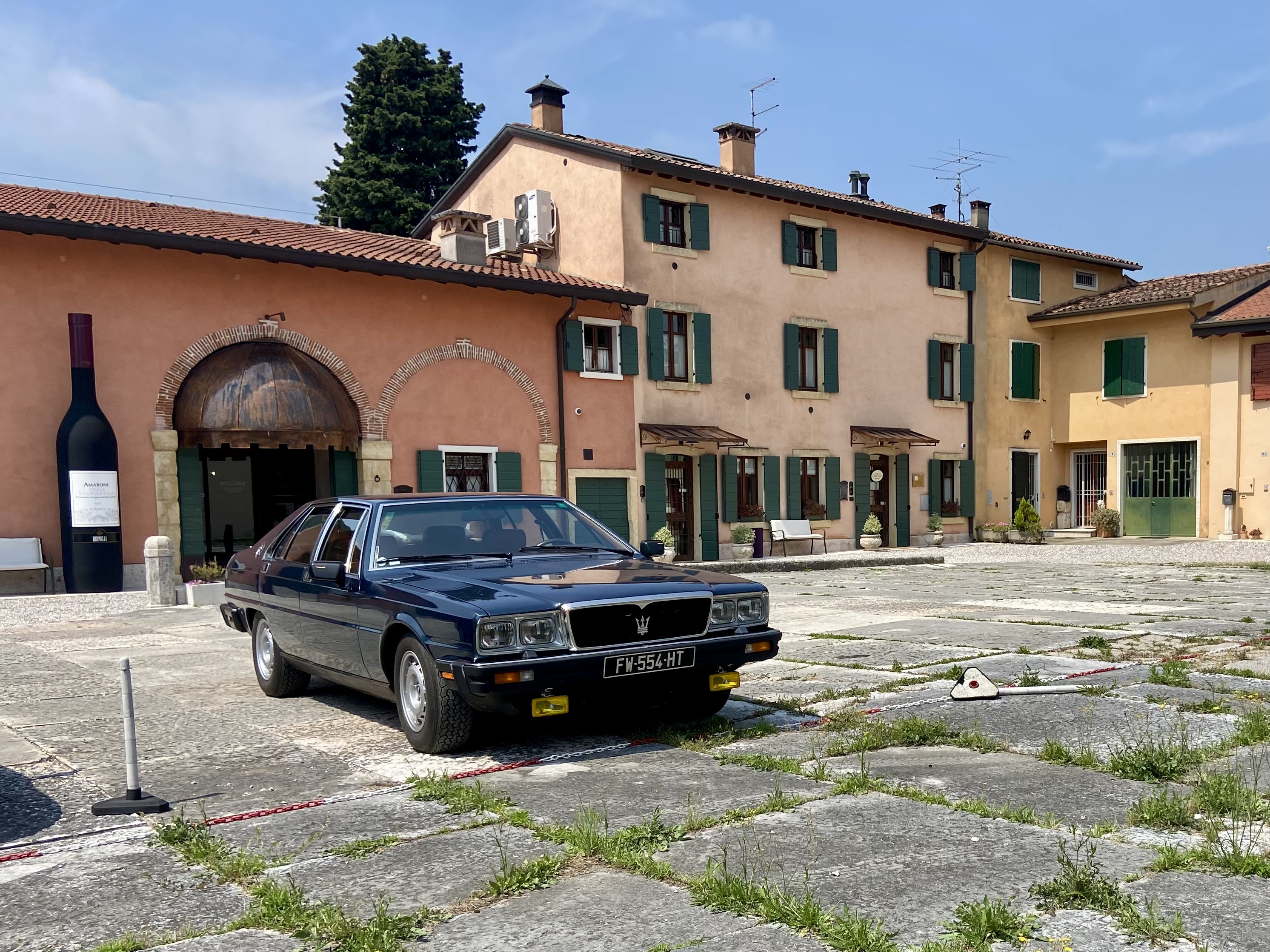 S’en est suivi un magnifique voyage de 2’000km, via Turin, Parme, Modène, Bologne, Padoue, Venise, Vérone, Bergame, Côme, Col du Gothard. Beaucoup de pouces levés, des gamins (et moins gamins) qui sortaient leur portable pour faire une petite video lorsque nous étions au feu rouge. Photos devant l’usine historique. Aucun pépin mécanique, sauf le voiturier d’un hotel qui a vidé la batterie en tentant de la démarrer (c’est vrai que les ventilateurs pompent beaucoup en ville), pas de consommation d’eau ou d’huile, 15-16l/100 de moyenne. Entre 120 et 160 sur l’autoroute reste son terrain favori !