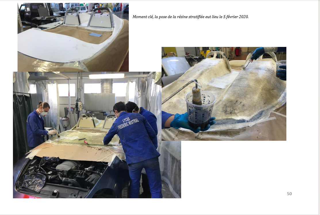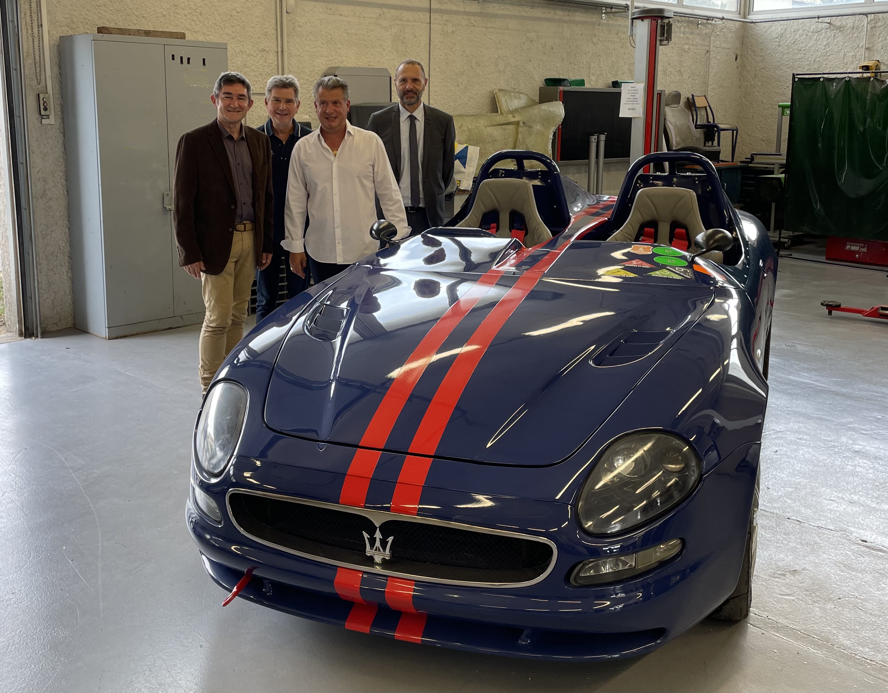 Ci dessus avec les élèves du lycée Mistral, Domi 13 accroupi à gauche, votre serviteur au volant (right hand drive comme les barquettes S auxquelles la 320S Vittoria rend hommage) et le professeur de carrosserie Yann Perret en passager.