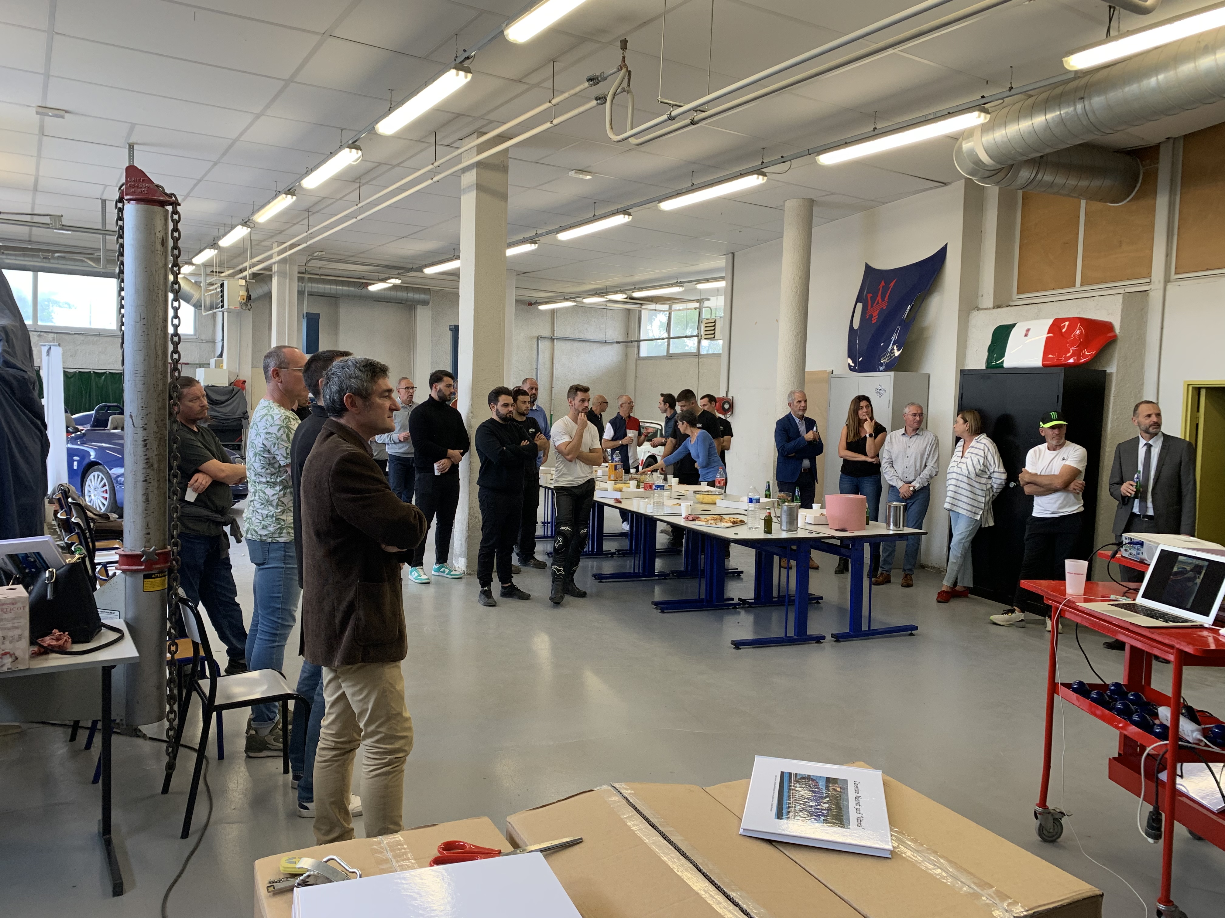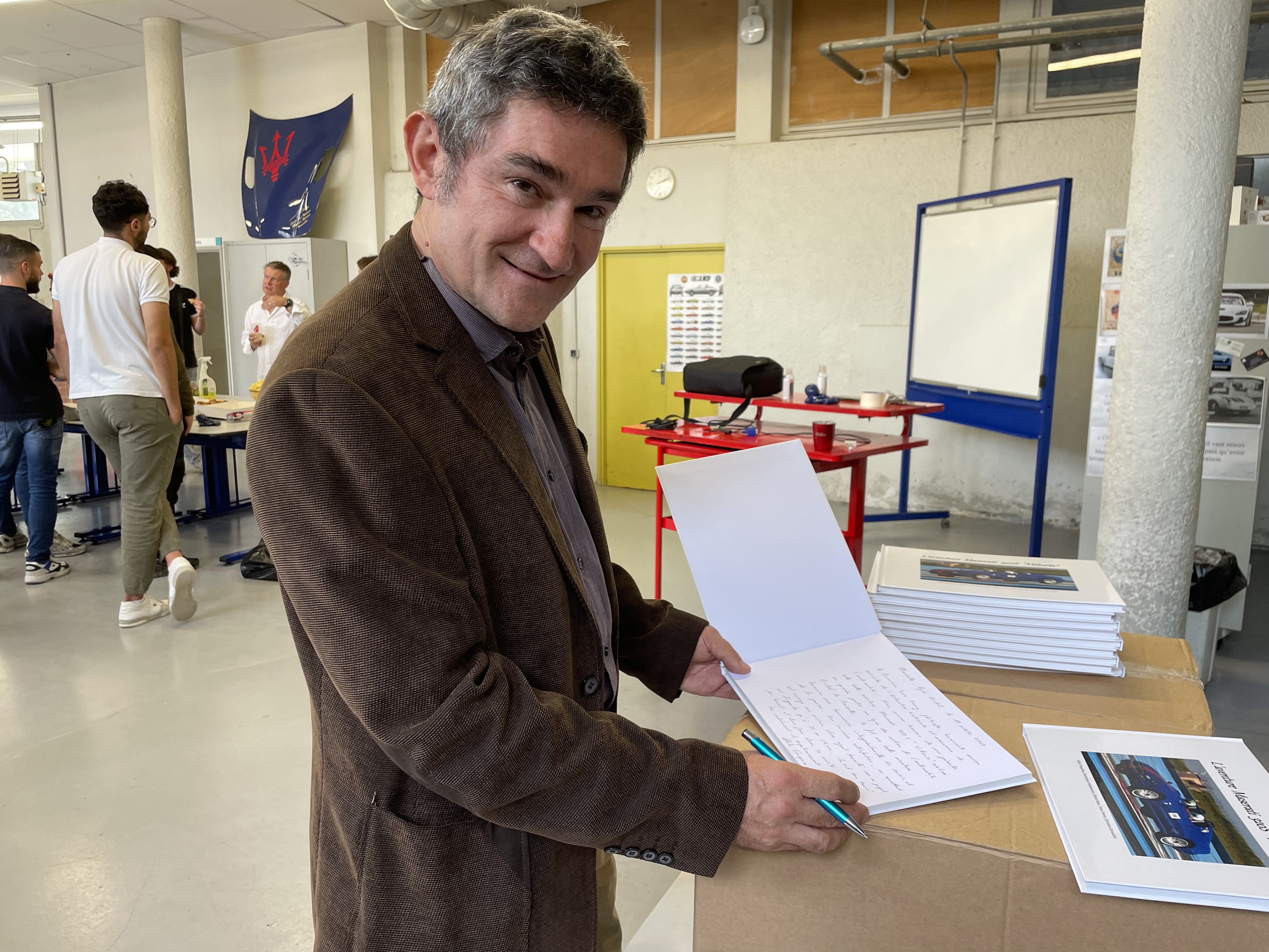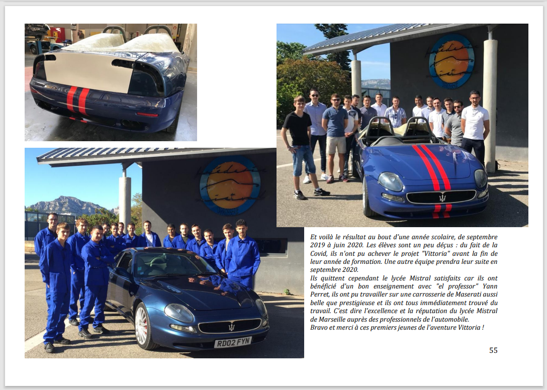 Chers amis, hier 19 octobre 2023 à l'heure du déjeuner, les excellents Domi 13 et Yann Perret ont organisé une belle cérémonie au lycée professionnel des métiers de l'automobile Mistral à Marseille durant laquelle, après avoir visionné le diaporama de 4 mn racontant l'aventure Maserati 320S "Vittoria" (https://www.youtube.com/watch?v=1a8CudGE7lM), nous avons remis le livre sur "Vittoria" aux anciens élèves ayant travaillé sur le projet ainsi qu'aux professeurs et au proviseur du Lycée.