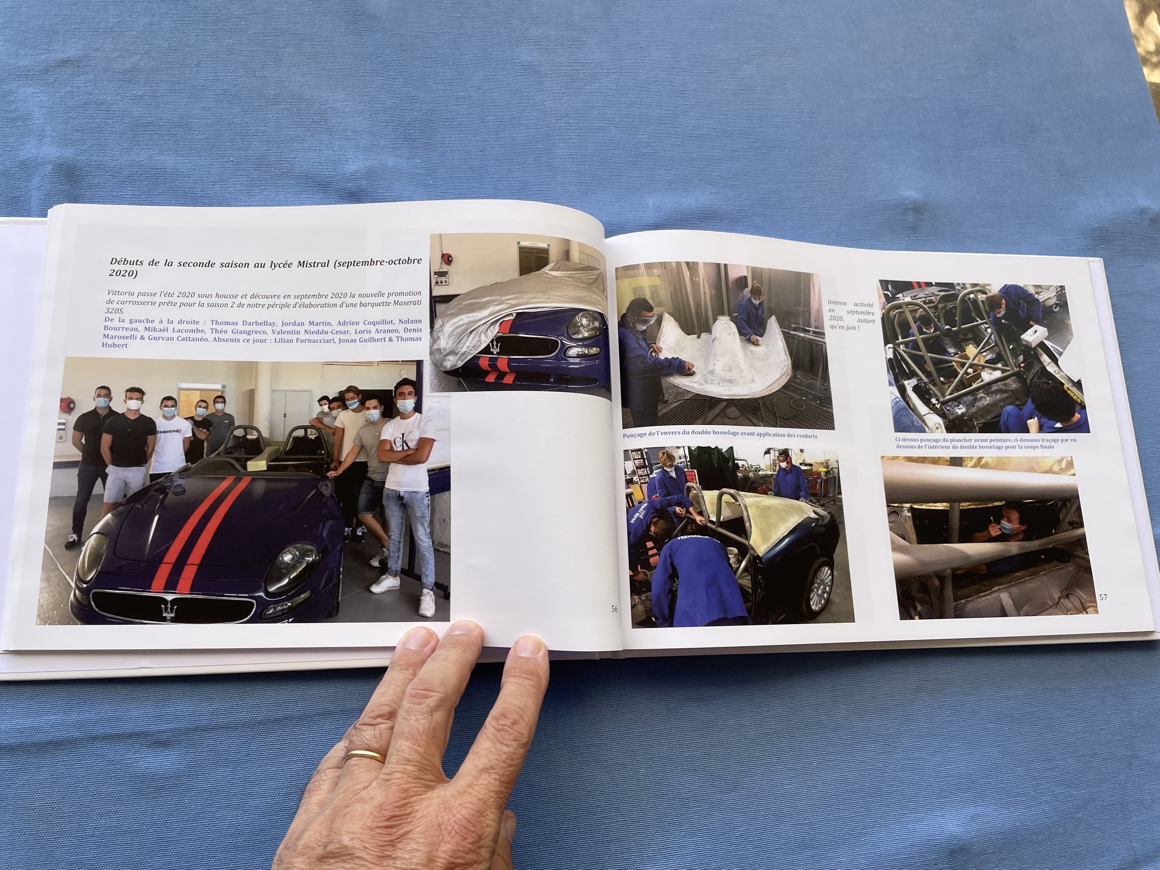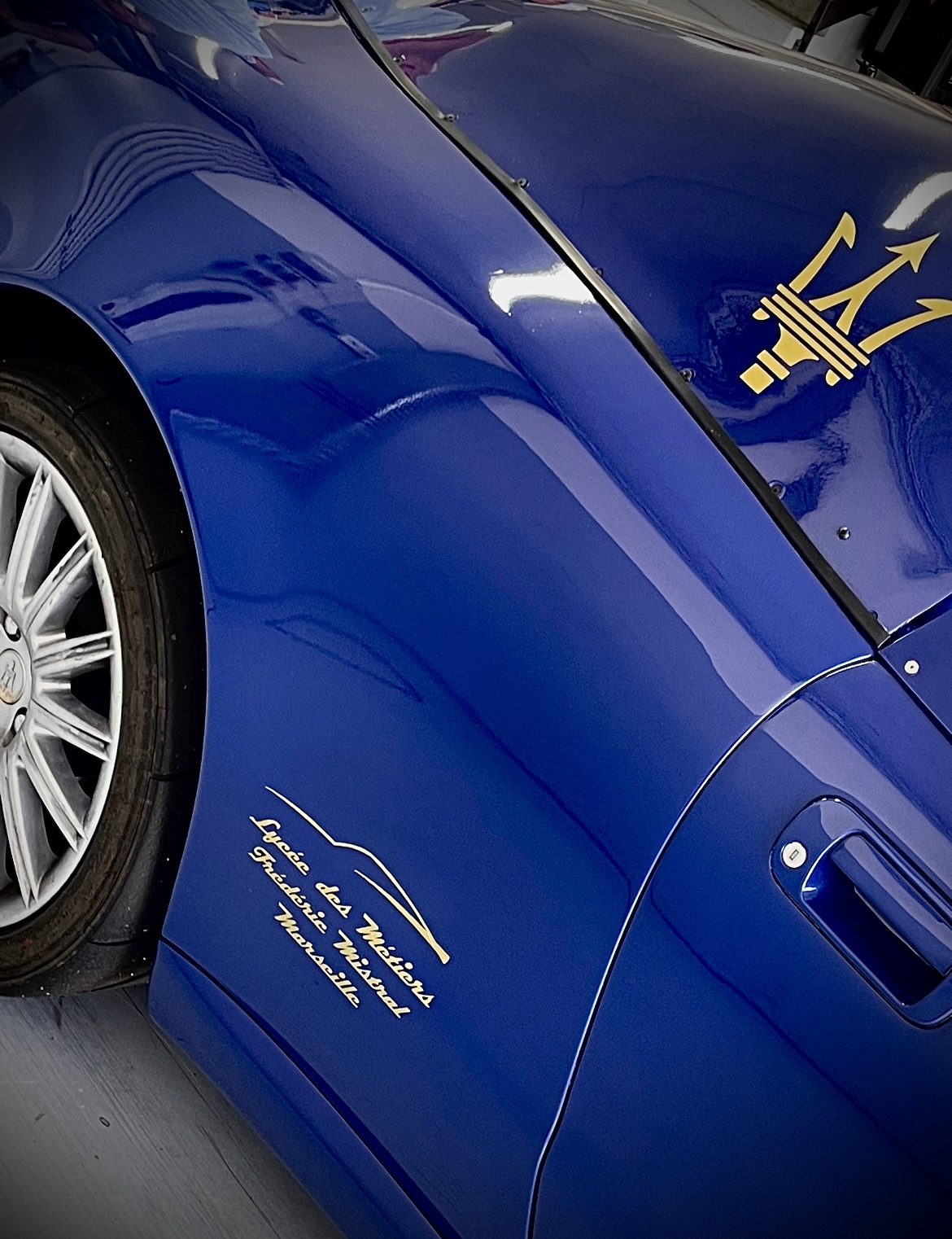 La professeure d'aérographie du lycée Mistral, Sabine Martin, très passionnée par son travail, m'a dit qu'elle avait repris la typographie de l'inscription Maserati de l'arrière de nos voitures pour la signature du lycée Mistral sur le capot et le flanc de Vittoria !