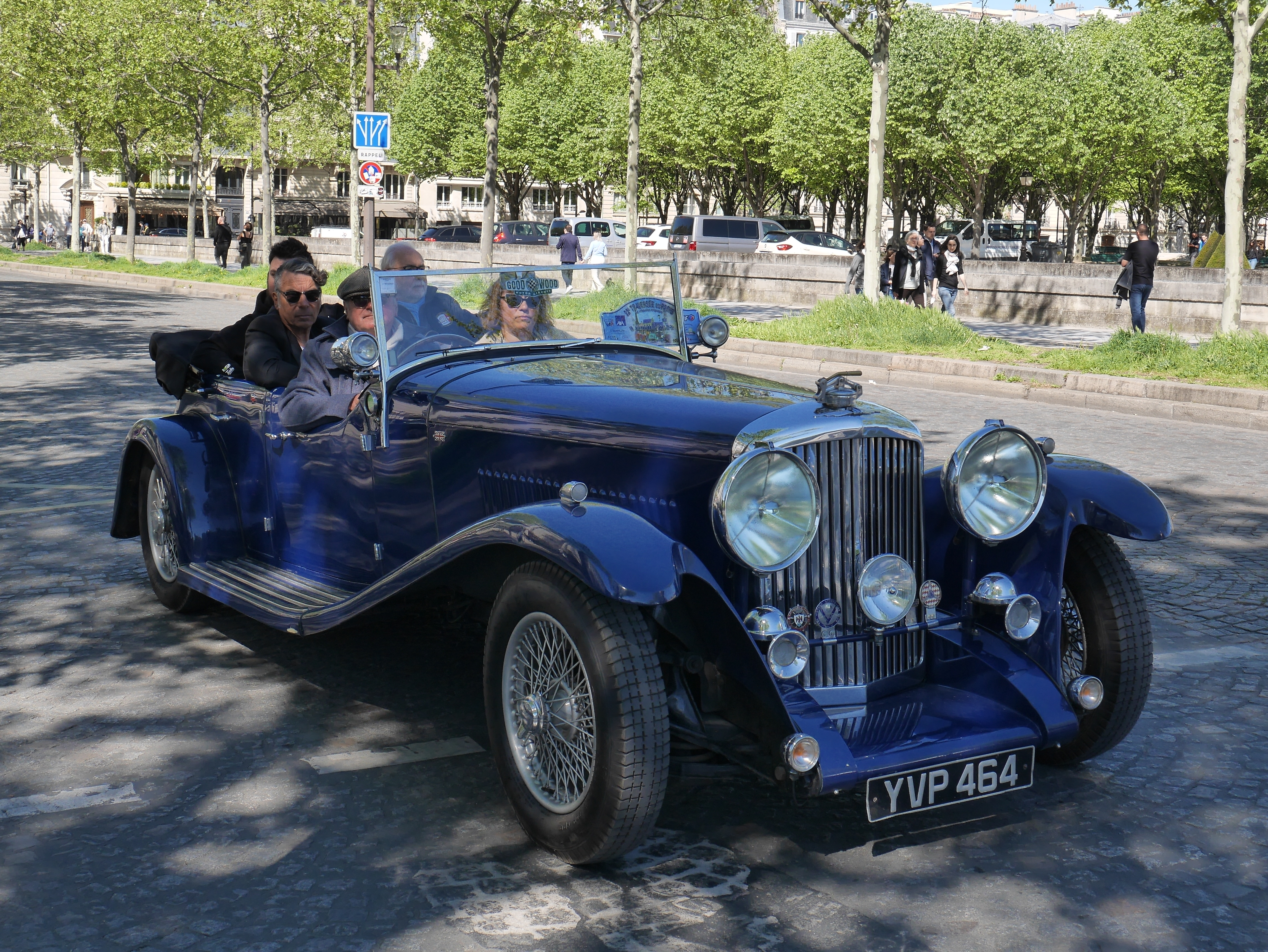 Le gros cabriolet bleu à 5 places (ou du moins 5 passagers) est une Silurian, kit car évocation des prestigieuses avant guerre,