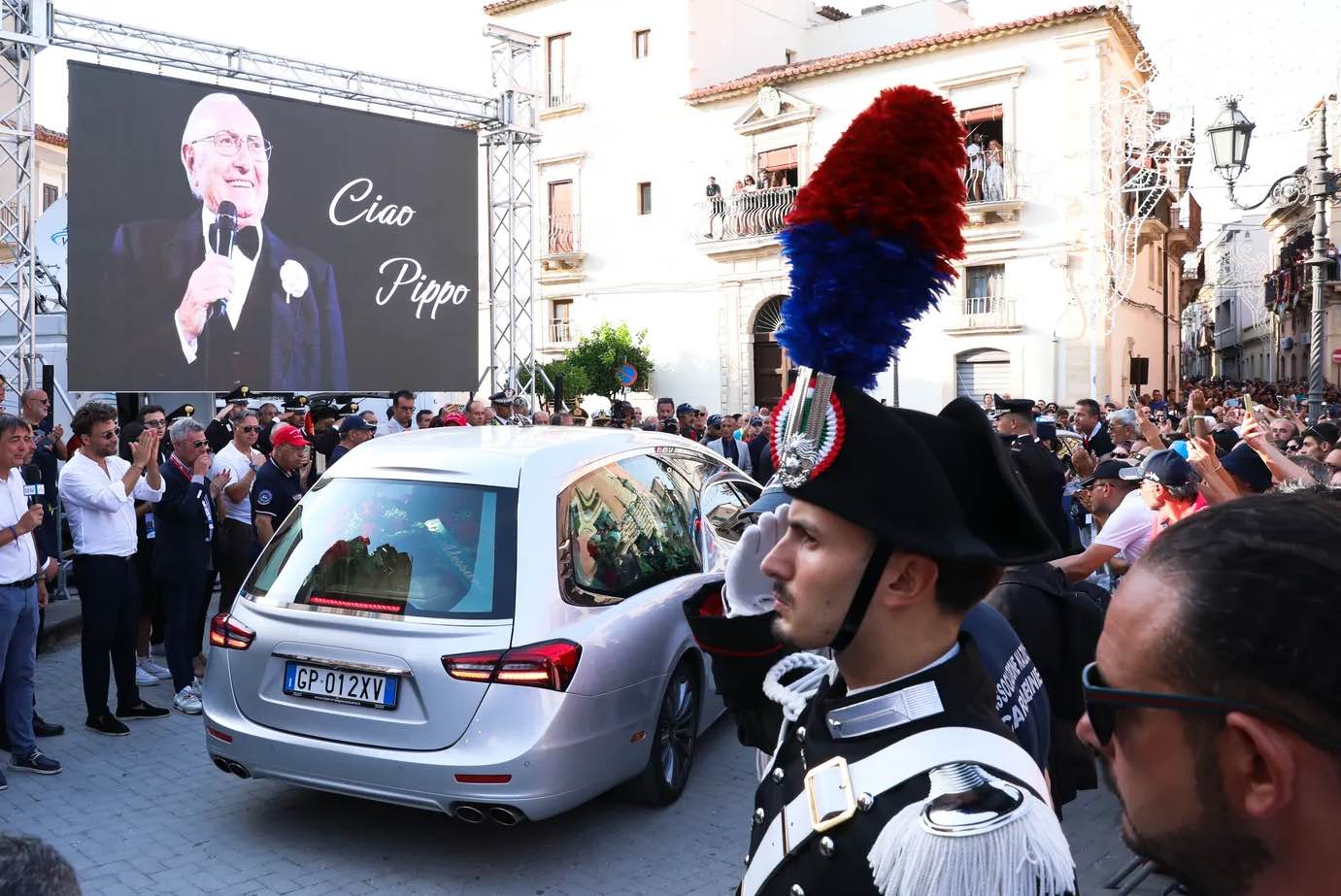 Le célébrissime présentateur TV italien Pippo Baudo quitte une dernière fois la scène il y a quelques jours, à bord d'une Maserati =