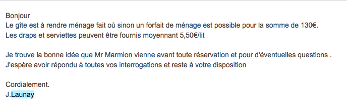 Donc 130 € par chambre (pour deux lits) avec drap serviettes et ménage pour le week end : parfait pour moi !!!
