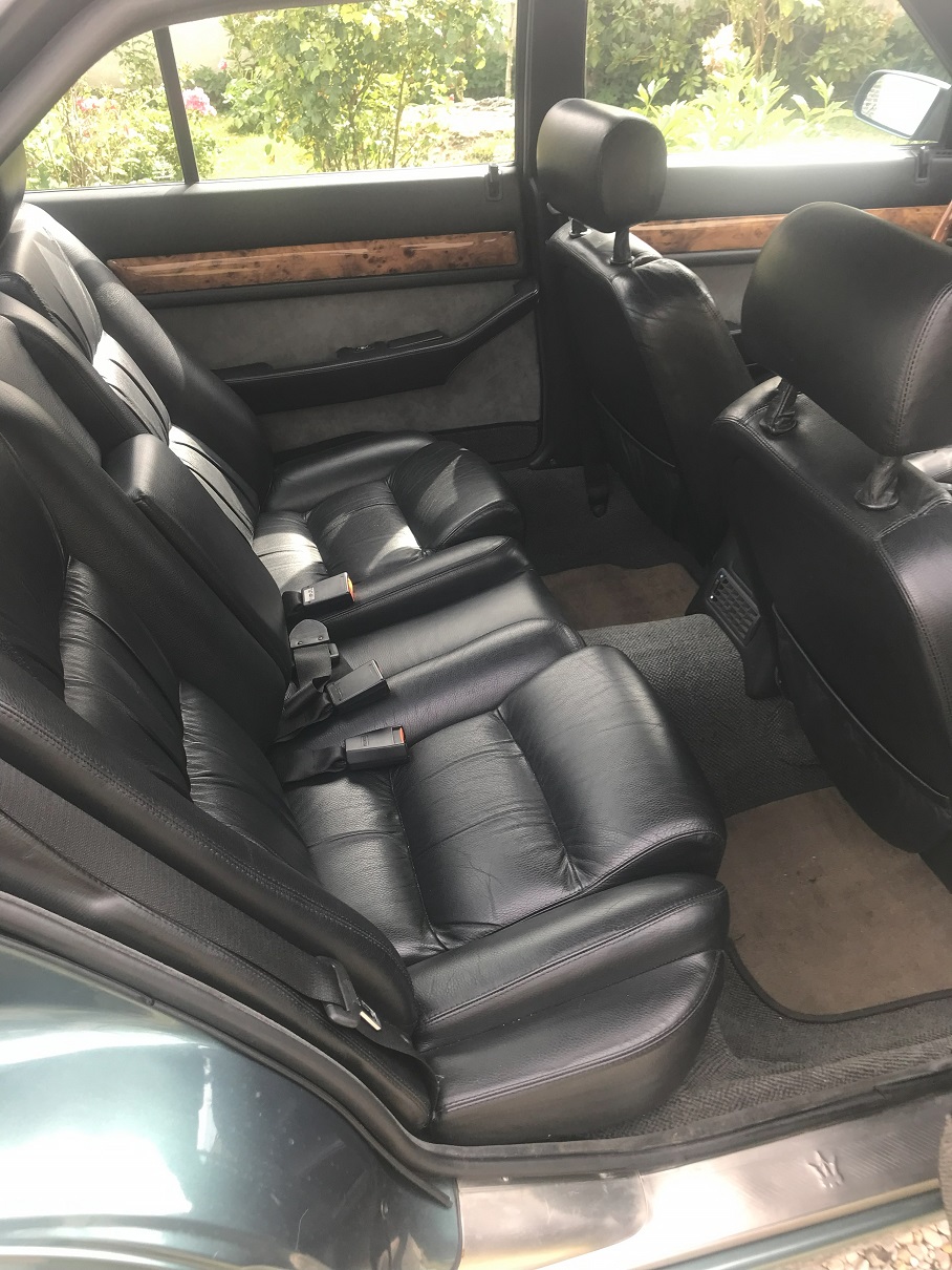 J’ai attaqué un petit detailling pour la faire toute belle, elle le mérite. A l’interieur le nettoyage du cuir est un gros boulot, non pas qu’il soit sale, mais du cuir, il y en a absolument partout, c’est hallucinant. Extérieurement la peinture a quelque petits impacts de gravillons mais globalement c’est correct pour une voiture de cet age.