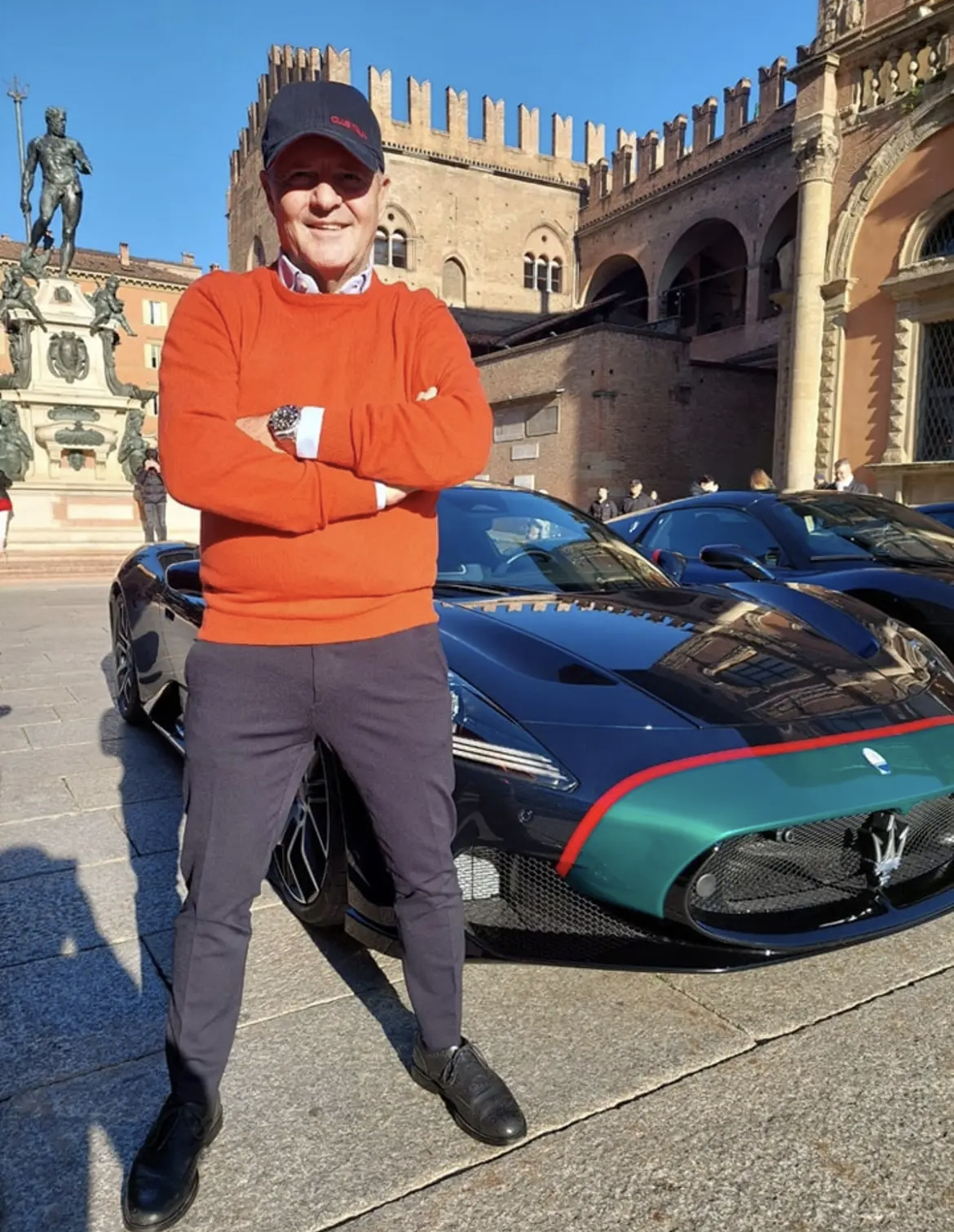 Miki Biason, champion du monde de rallye, est un Maseratiste de longue date. Il avait déjà participé à la Selenia Ghibli Open Cup. Il s’est offert une MC20 fuoriserie. La consegna s’est faite à Bologna devant la statue de Neptune.