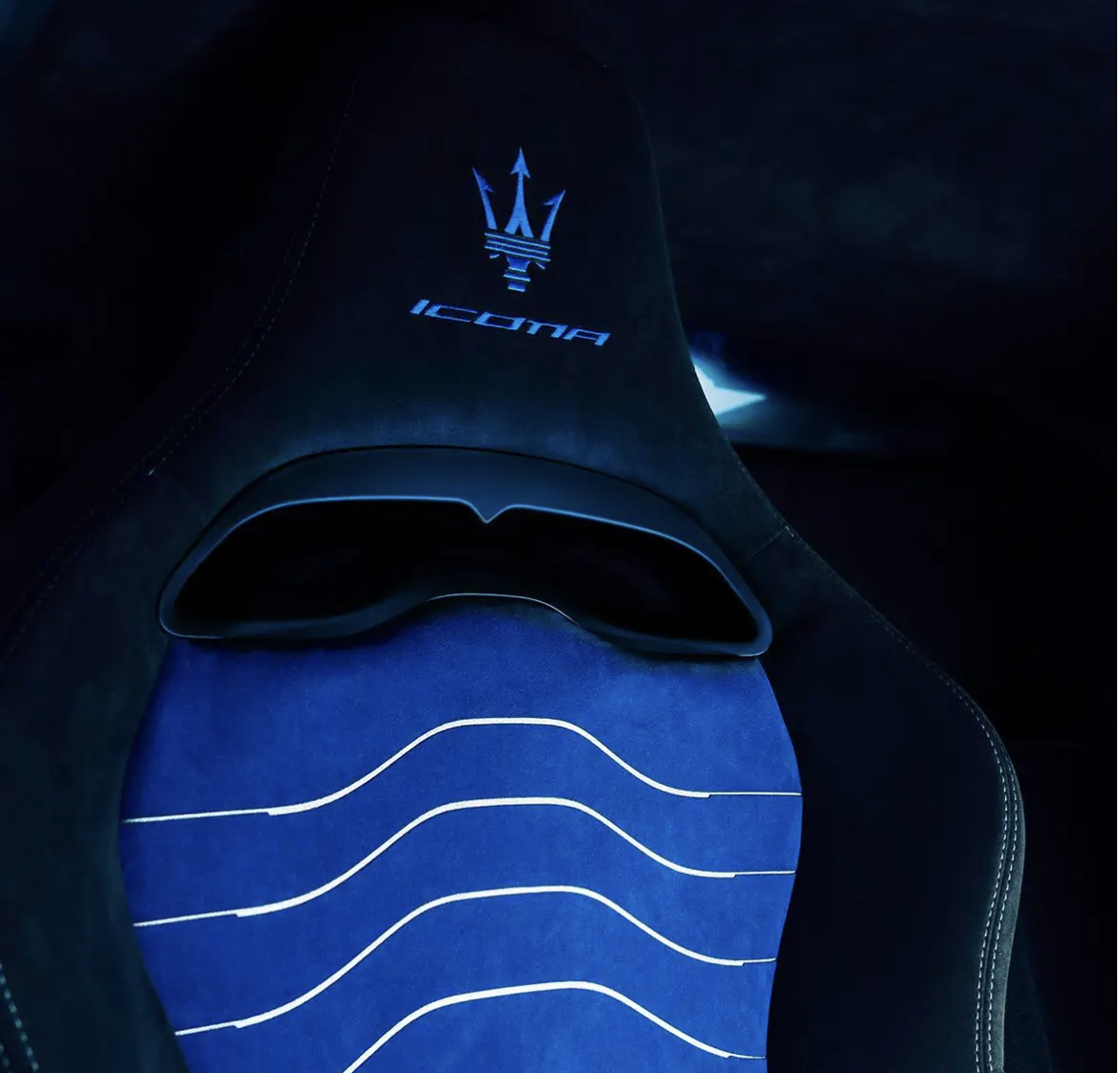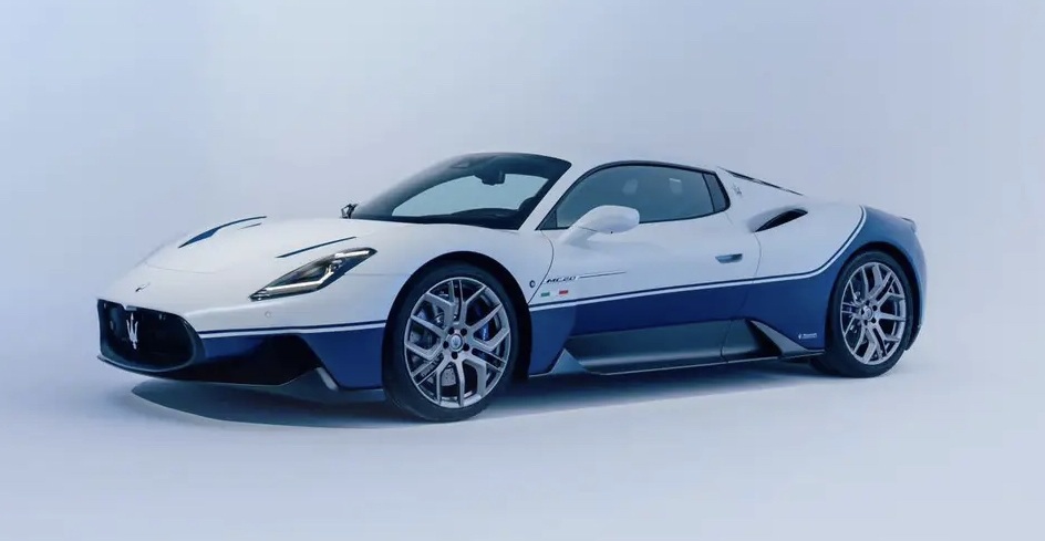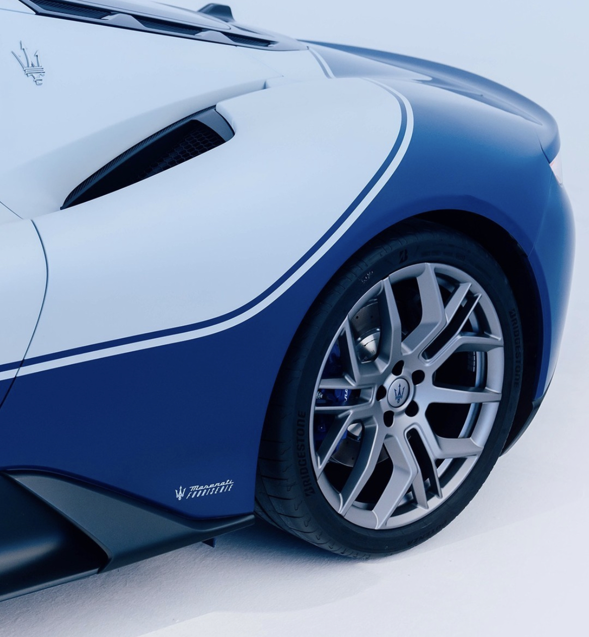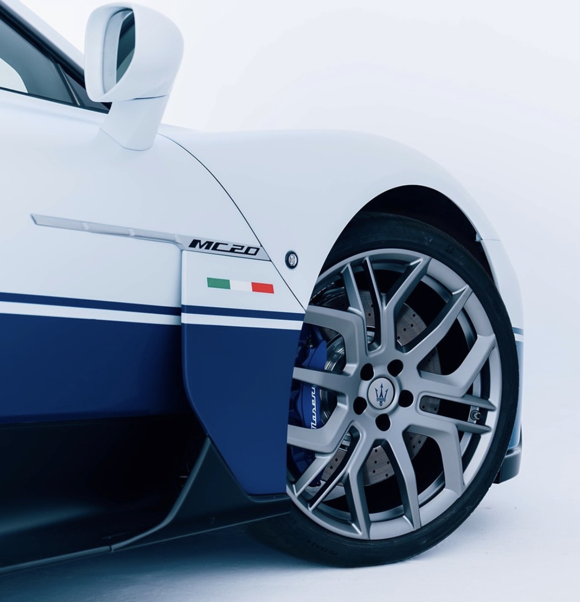 La MC20 Icona évoque la MC12 Stradale avec sa peinture Bianco Audace matte e Blu stradale.