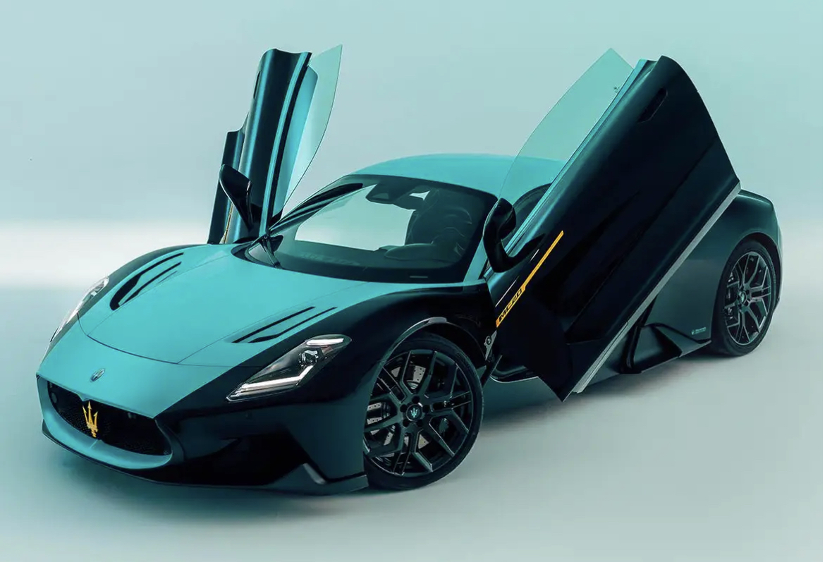 La MC20 Leggenda évoque la MC12 GT1 du Vitaphone Racing (célèbre pour ses victoires aux 24 h de Spa) avec ses couleurs Nero essenza e Digital Mint matte.