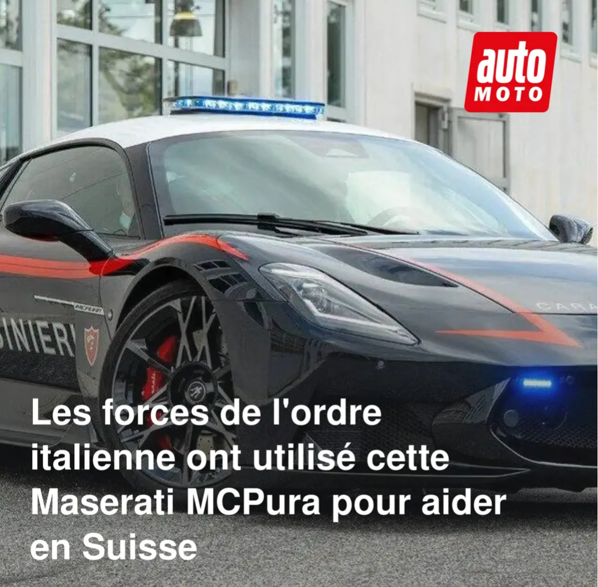 On nous l'affirme, cette MC20 Pura est destinée aux transports médicaux urgents, mais pour l'instant, elle sert de faire-valoir aux carabiniers à l'approche des JO de Milan-Cortina =