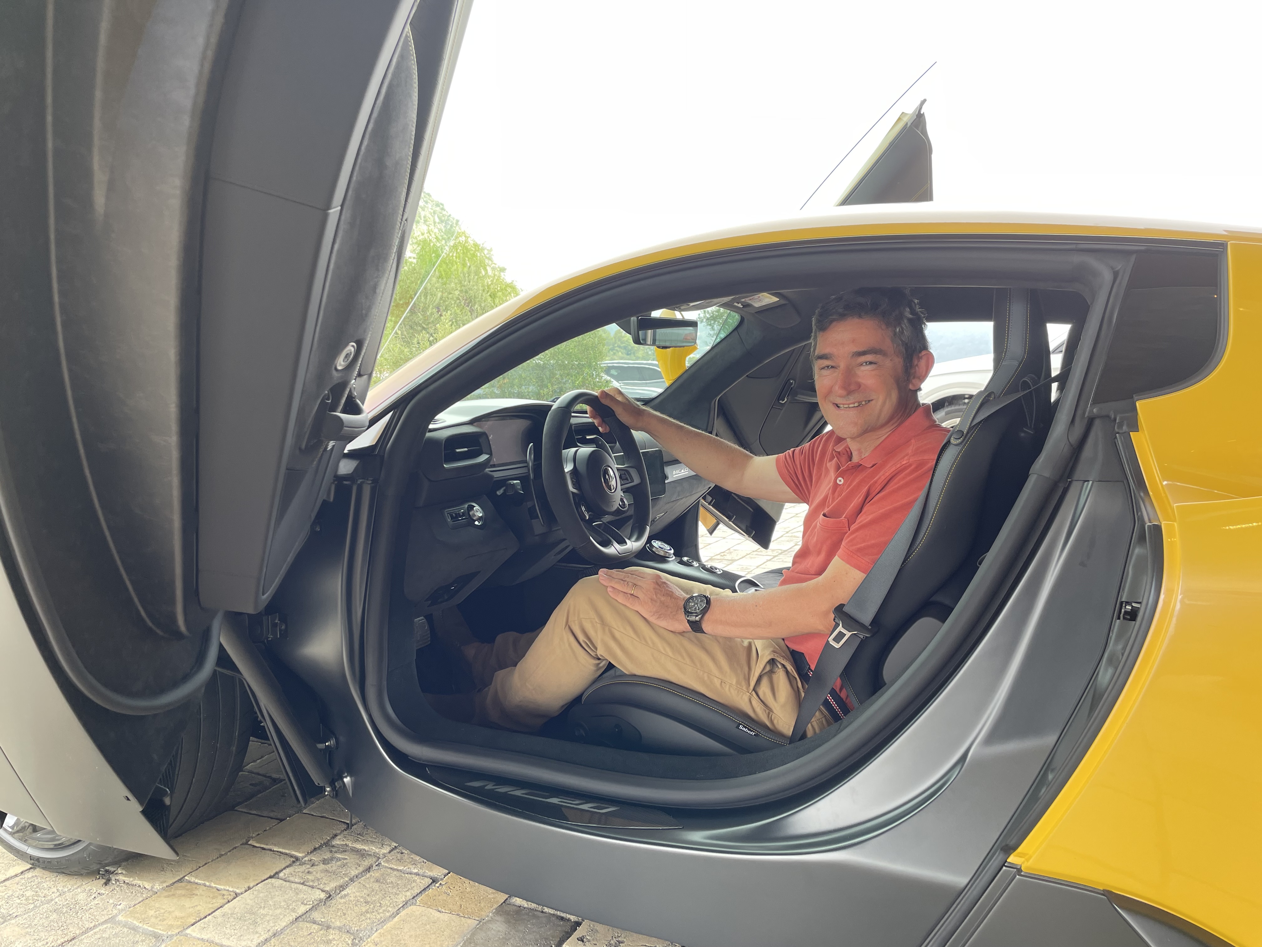 A son retour, Michel est enthousiasmé, il me dit que je peux prendre le volant avec Julien à côté pour me guider. C’était plutôt prévu pour les semaines suivantes, je suis surpris de pouvoir conduire la MC20 si précocement le jour même de sa livraison et terriblement heureux :