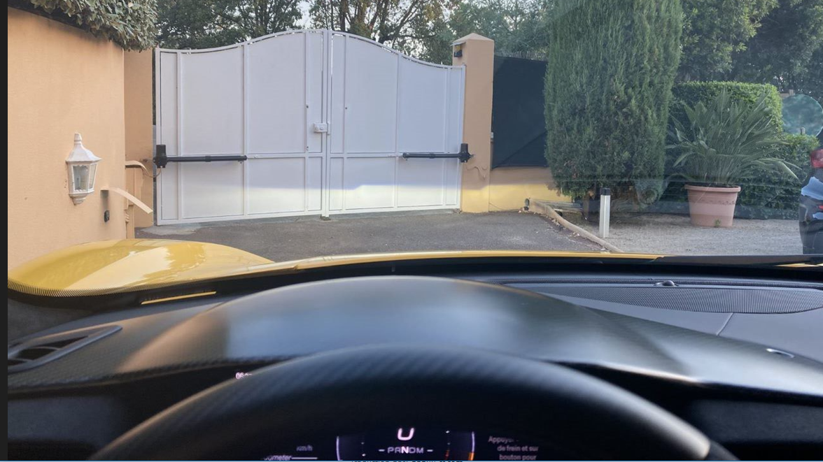 Julien me dit que ce n’est plus totalement vrai de nos jours et puis, avec la zone rouge à 8000 tours, il y a de la marge. C’est vrai mais quand même, je reste vieille école et persuadé qu’un certain rodage moteur est nécessaire ou au moins bénéfique. Petite angoisse à la sortie Monaco, un camion bleu est là. Ouf, les policiers nous laissent passer. Julien me demande d’appuyer sur le bouton relevant l’avant de l’auto pour la petite margelle à l’entrée du parking de l’hôtel. C’est efficace à 40 km/h ou moins mais il faut vite trouver le bouton, pas facile si le volant tourne, puis quand même quelque chose comme 2 secondes sont nécessaires pour lever le nez. Pression sur le bouton R, aucun à-coup, le stationnement en marche arrière est facile avec la camera de recul qui donne aussi les trajectoires. Les deux palettes tirées vers soi en même temps enclenchent la position parking de la boite. Bouton de frein à main électrique et le tour de manège est fini !