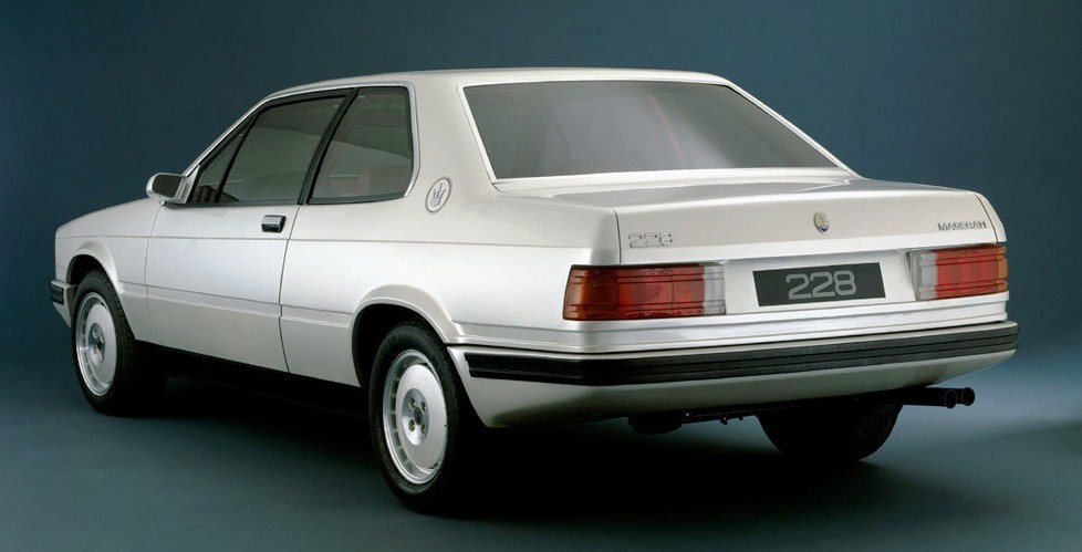 Pierangelo Andreani dessina la 228 en augmentant les dimensions et en gommant les arêtes vives de la Biturbo originelle dont il était également l'auteur. Deux particularités de son design :