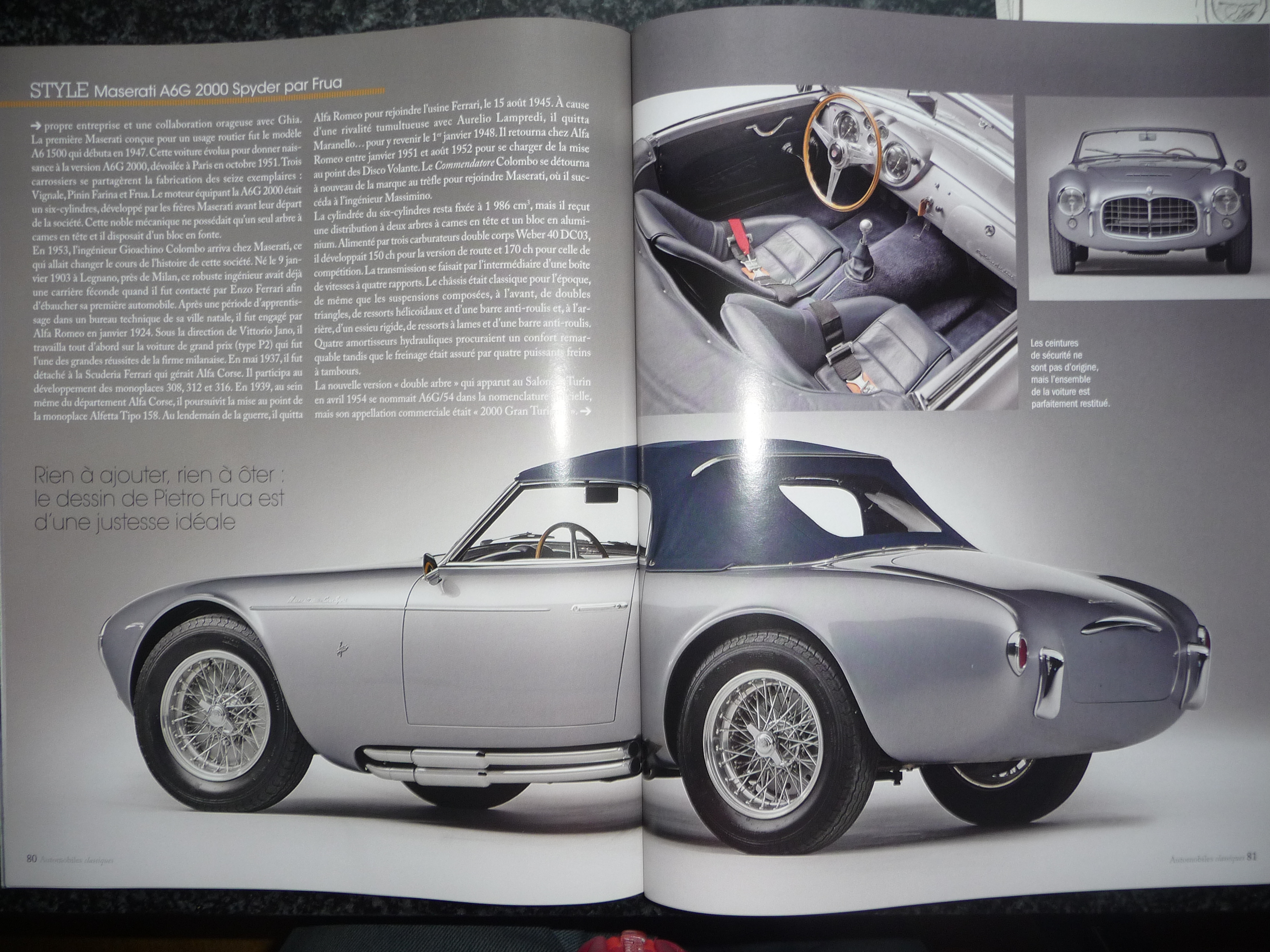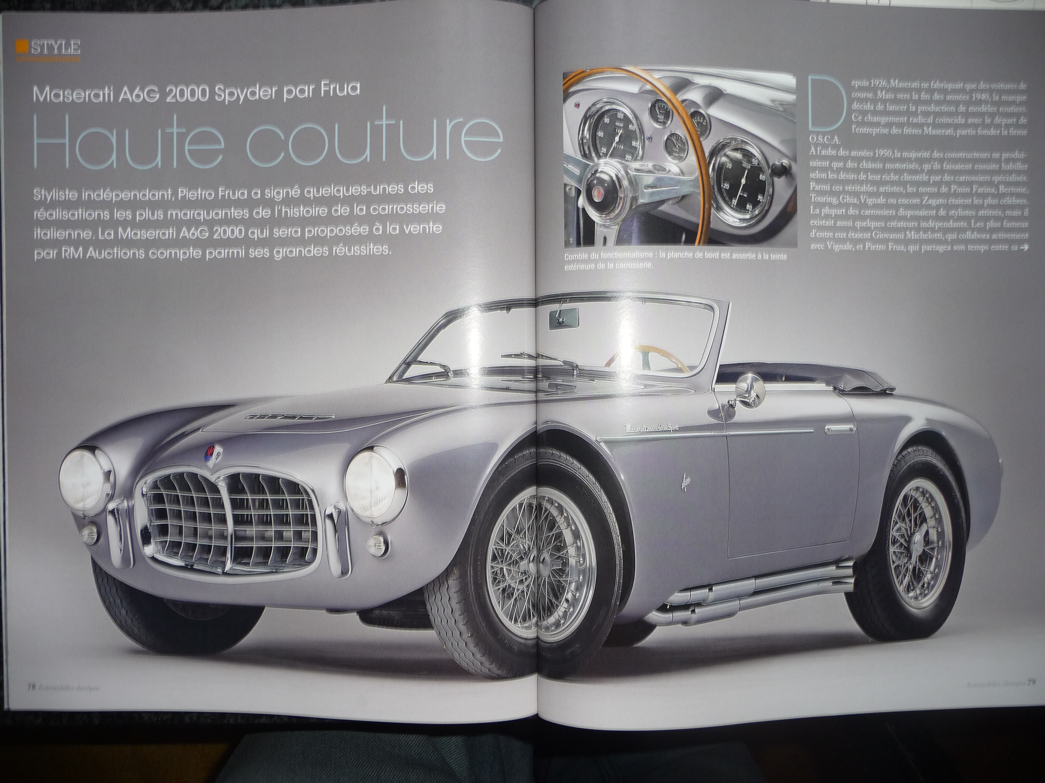 J'ai trouvé ce matin un numéro d'Automobiles Classiques de juin 2013 dans lequel le spyder A6G 2000 de Frua était à l'honneur dans la rubrique Style, avec le titre "Haute couture".