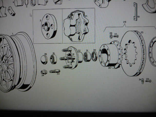 Eh bien l'examen sur place puis l'anbalyse des pièces détachées dans les manuels révèle que ça ne va pas être si simple de monter des roues BBS, il va falloir encore bricoler!