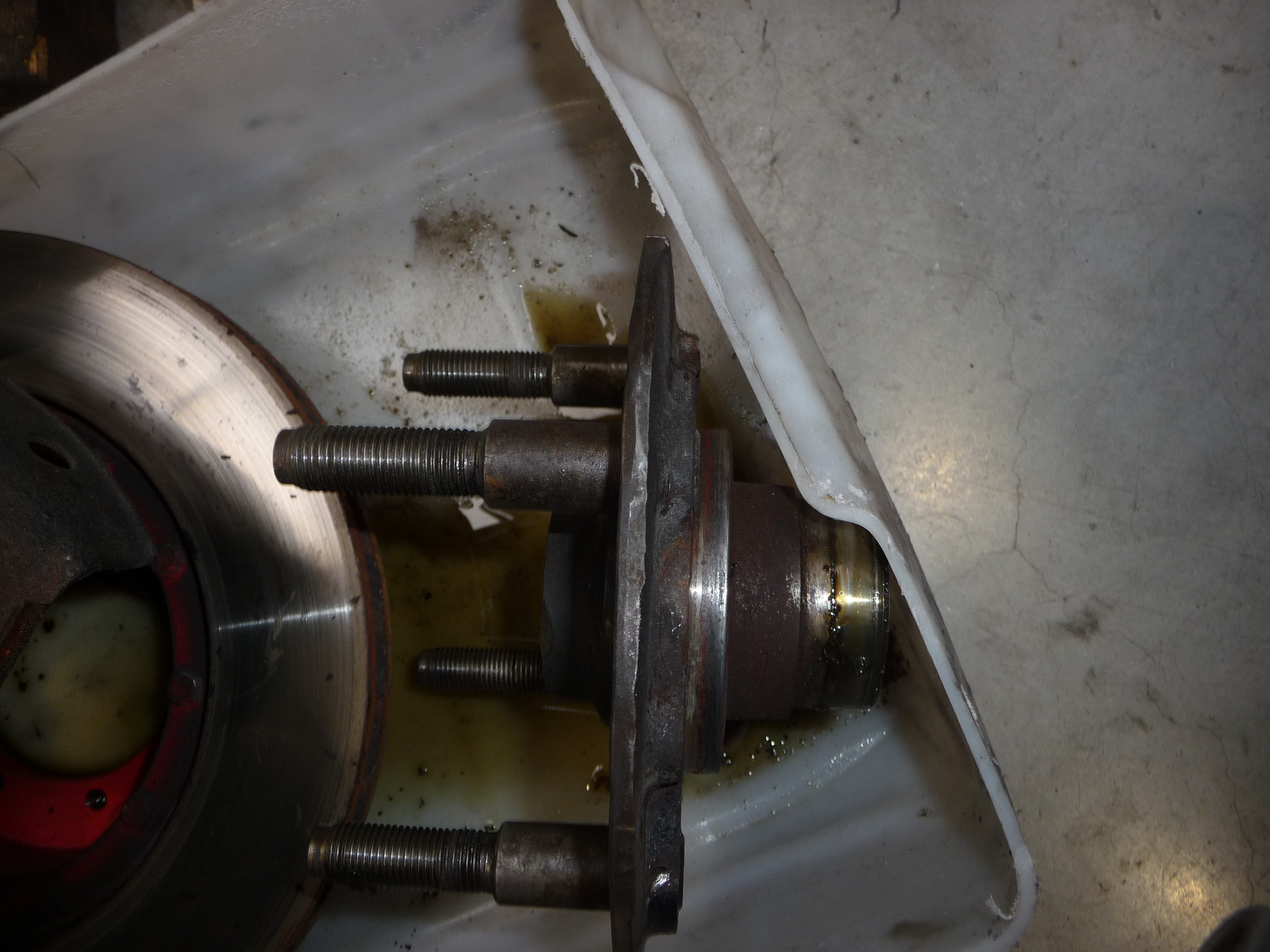 Voici le moyeu sur lequel on observe que les 4 goujons sont bien du modèle "long", càd d'une longueur d'environ 70 mm à partir du plan de fixation, dont environ 30 mm de partie non filetée: