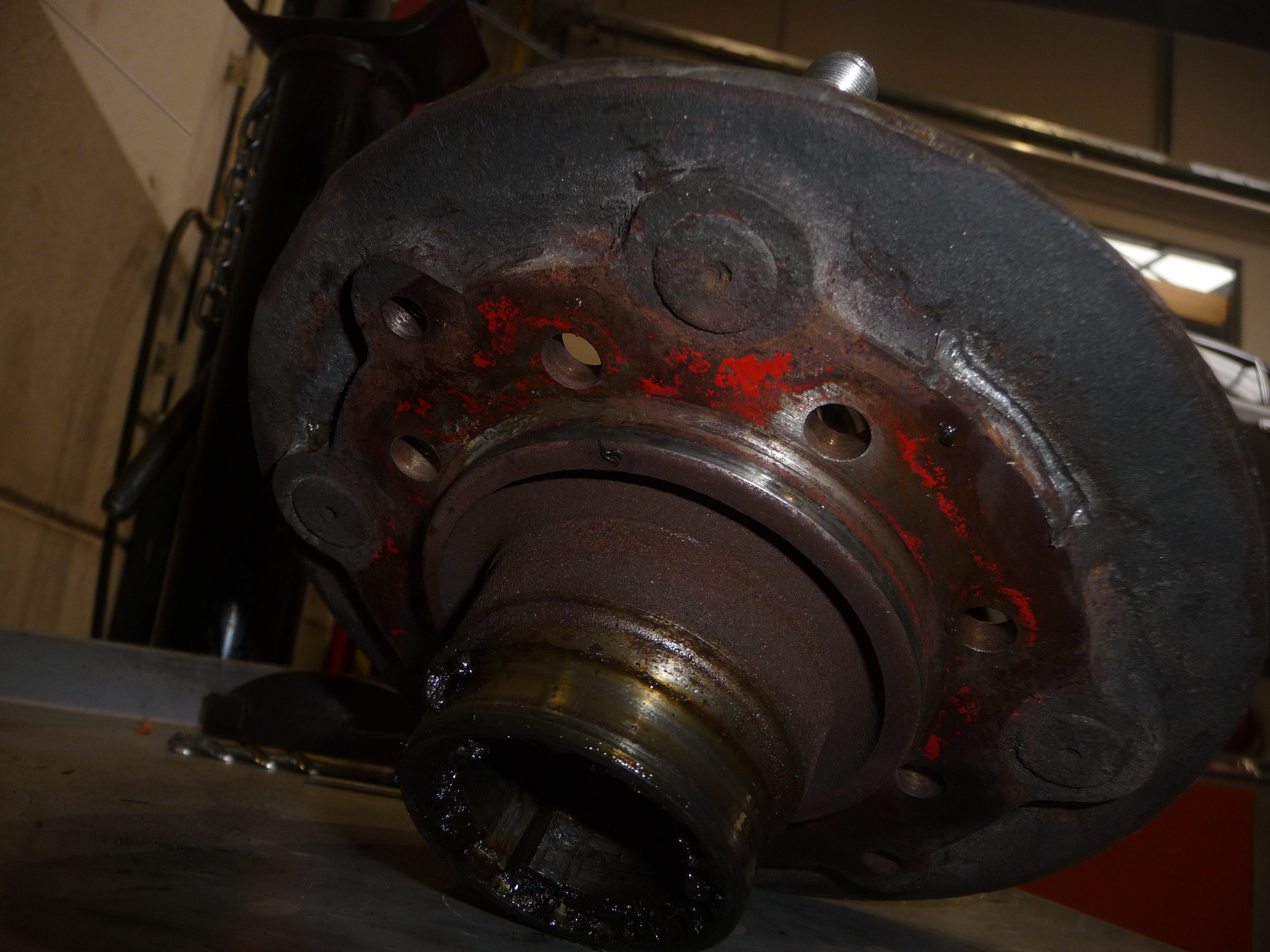 Voici le moyeu sur lequel on observe que les 4 goujons sont bien du modèle "long", càd d'une longueur d'environ 70 mm à partir du plan de fixation, dont environ 30 mm de partie non filetée: