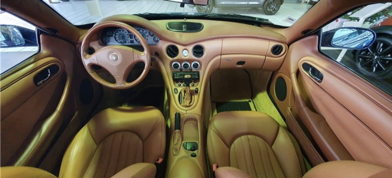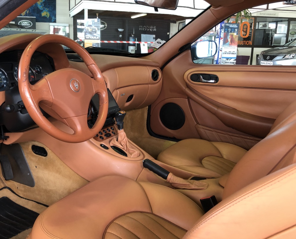 En revanche, elle a quand même un peu vadrouillé : l'autocollant Forza Automobiles sur la lunette arrière (le même que j'ai sur la Ghibli) indique qu'elle est probablement d'abord partie en France.
